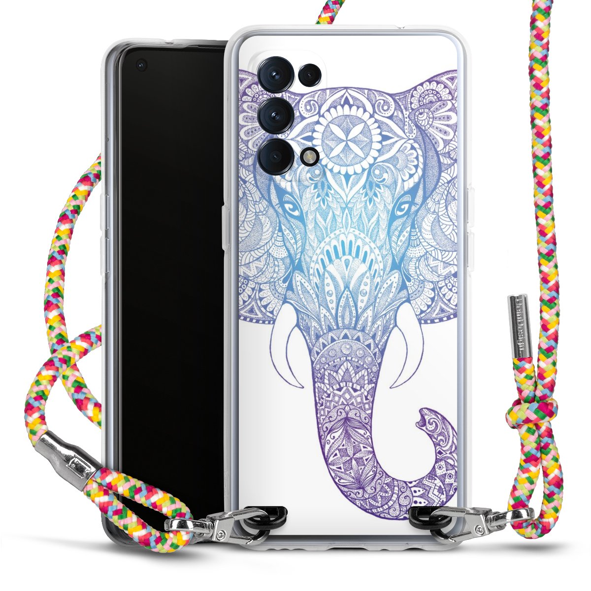 The flexible case is made from a highquality TPU material (thermoplastic Polyurethan). Thanks to its longlasting and break resistant characterisitcs, the case is flexible yet consistent in form and has a great grip and feel. The textile strap made from Polyester gives a chic yet casual accent allowing you to carry your phone like a bag or necklace - a practical gadget perfect for your next adventure. The textile strap is about 1.70 meters long and the length can easily be adjusted through the knots. Our Carry Case is available in Colourful, Mint-Camouflage, Very-Berry, Sahara-Sand and Sparkling-Neon. The ends of the textile strap are covered with metallic end caps to protect them against fraying.