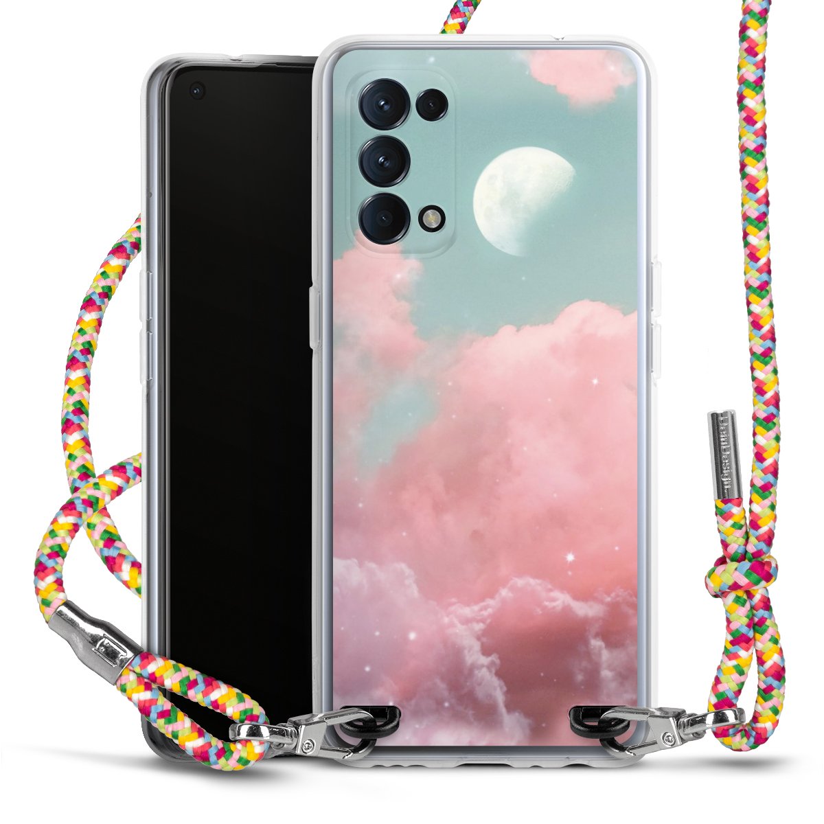 The flexible case is made from a highquality TPU material (thermoplastic Polyurethan). Thanks to its longlasting and break resistant characterisitcs, the case is flexible yet consistent in form and has a great grip and feel. The textile strap made from Polyester gives a chic yet casual accent allowing you to carry your phone like a bag or necklace - a practical gadget perfect for your next adventure. The textile strap is about 1.70 meters long and the length can easily be adjusted through the knots. Our Carry Case is available in Colourful, Mint-Camouflage, Very-Berry, Sahara-Sand and Sparkling-Neon. The ends of the textile strap are covered with metallic end caps to protect them against fraying.