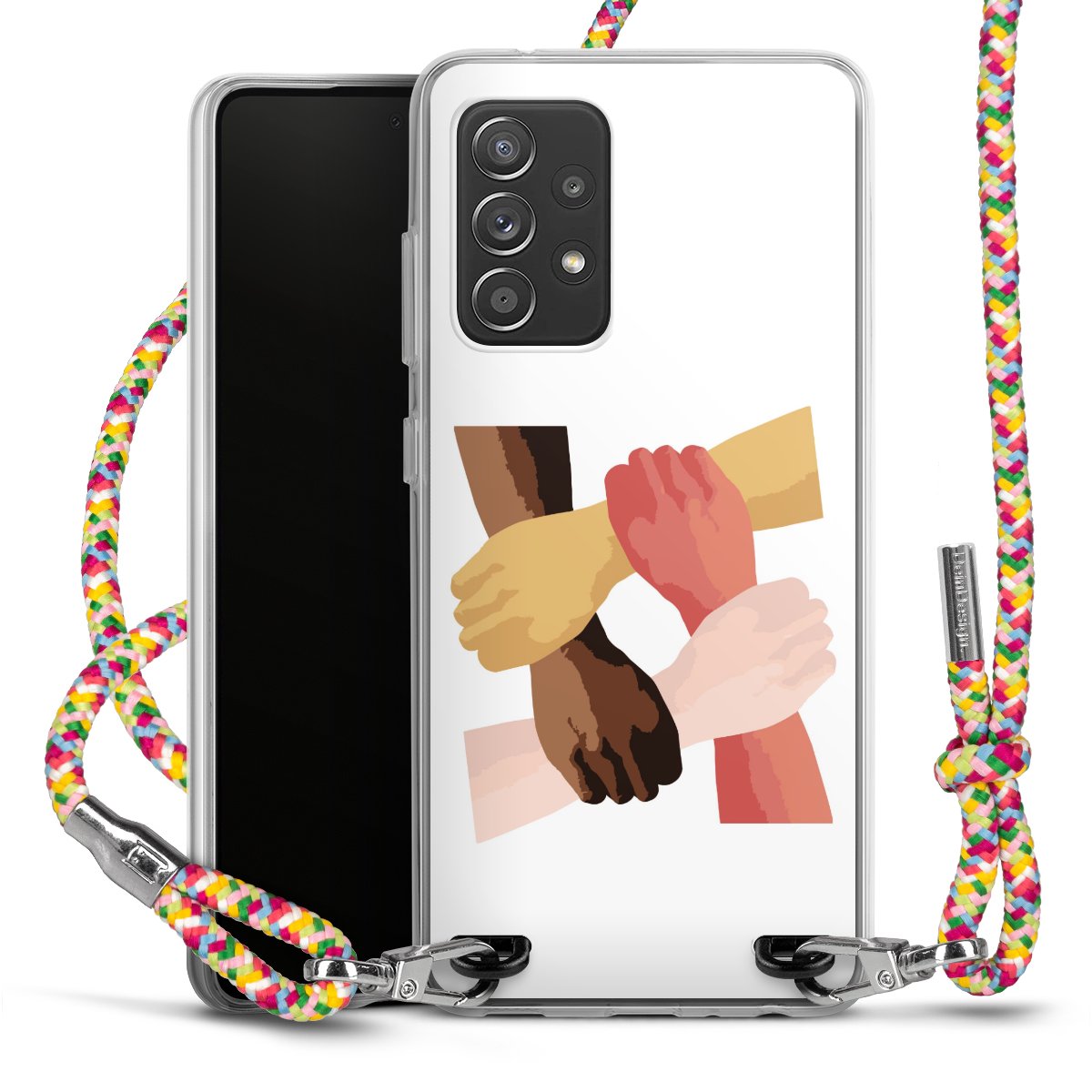 The flexible case is made from a highquality TPU material (thermoplastic Polyurethan). Thanks to its longlasting and break resistant characterisitcs, the case is flexible yet consistent in form and has a great grip and feel. The textile strap made from Polyester gives a chic yet casual accent allowing you to carry your phone like a bag or necklace - a practical gadget perfect for your next adventure. The textile strap is about 1.70 meters long and the length can easily be adjusted through the knots. Our Carry Case is available in Colourful, Mint-Camouflage, Very-Berry, Sahara-Sand and Sparkling-Neon. The ends of the textile strap are covered with metallic end caps to protect them against fraying.