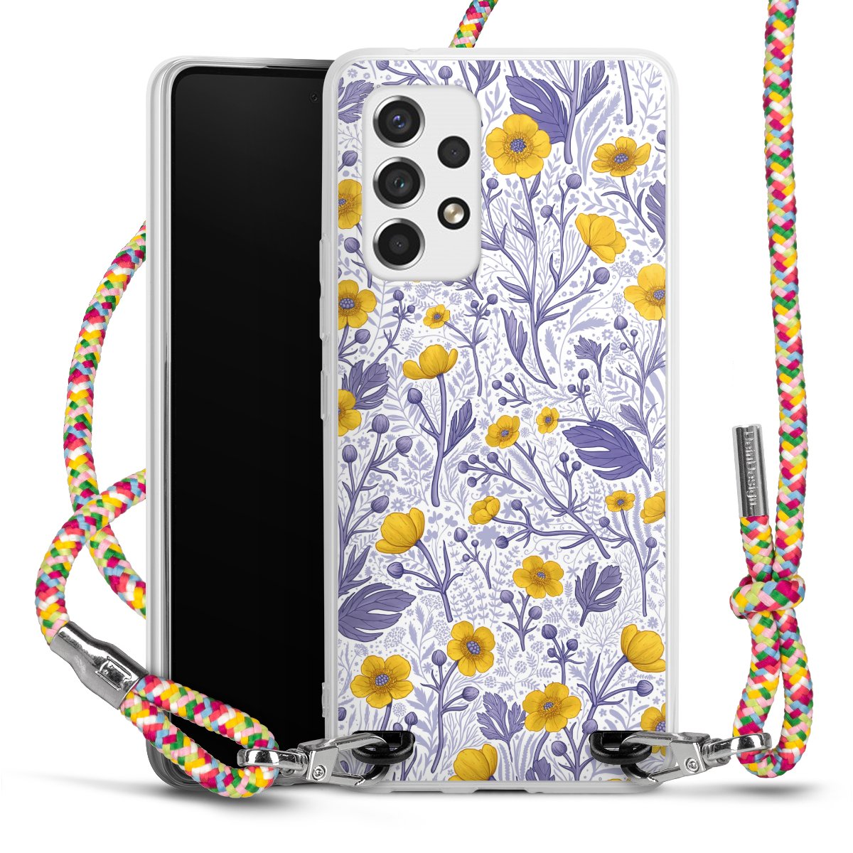 The flexible case is made from a highquality TPU material (thermoplastic Polyurethan). Thanks to its longlasting and break resistant characterisitcs, the case is flexible yet consistent in form and has a great grip and feel. The textile strap made from Polyester gives a chic yet casual accent allowing you to carry your phone like a bag or necklace - a practical gadget perfect for your next adventure. The textile strap is about 1.70 meters long and the length can easily be adjusted through the knots. Our Carry Case is available in Colourful, Mint-Camouflage, Very-Berry, Sahara-Sand and Sparkling-Neon. The ends of the textile strap are covered with metallic end caps to protect them against fraying.