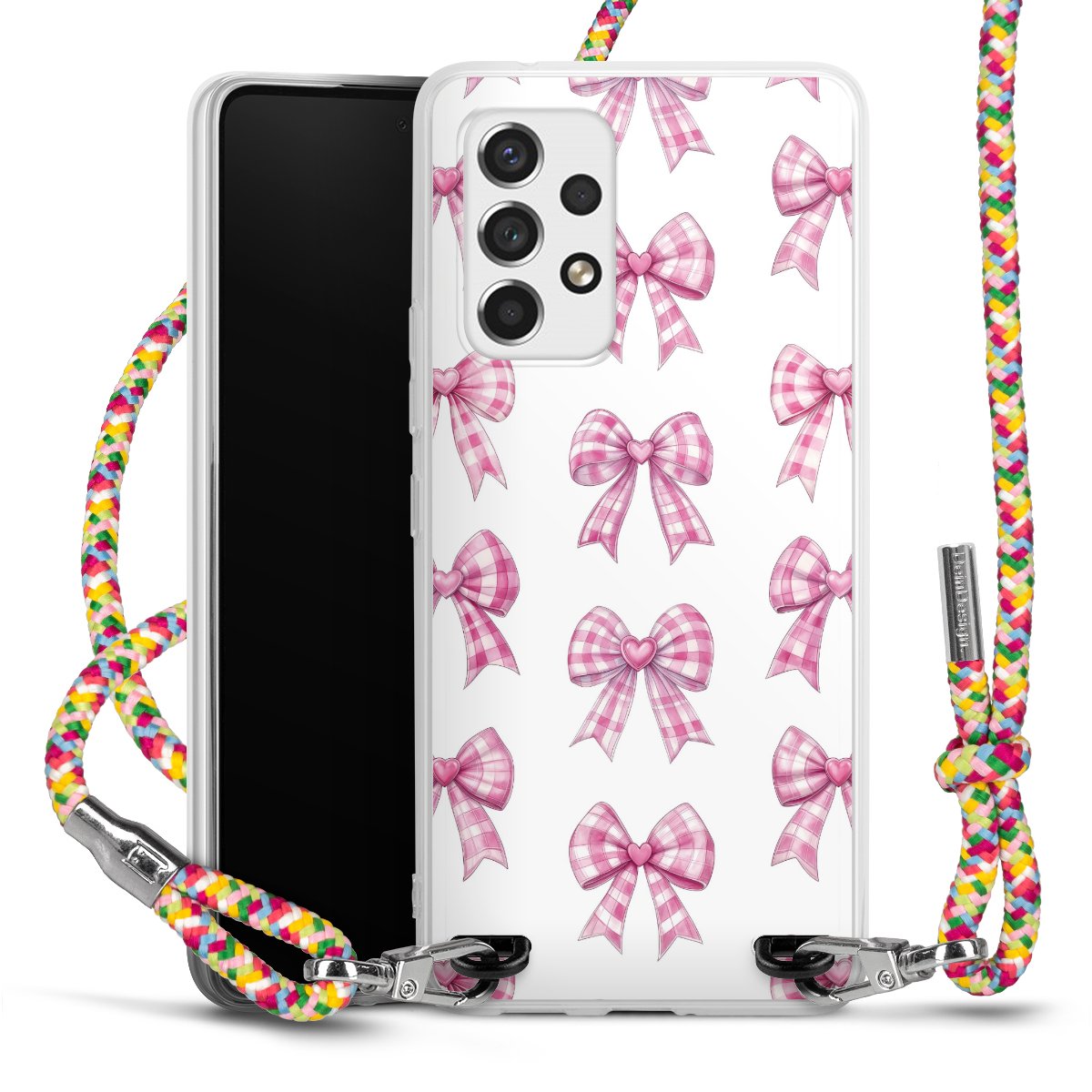 The flexible case is made from a highquality TPU material (thermoplastic Polyurethan). Thanks to its longlasting and break resistant characterisitcs, the case is flexible yet consistent in form and has a great grip and feel. The textile strap made from Polyester gives a chic yet casual accent allowing you to carry your phone like a bag or necklace - a practical gadget perfect for your next adventure. The textile strap is about 1.70 meters long and the length can easily be adjusted through the knots. Our Carry Case is available in Colourful, Mint-Camouflage, Very-Berry, Sahara-Sand and Sparkling-Neon. The ends of the textile strap are covered with metallic end caps to protect them against fraying.