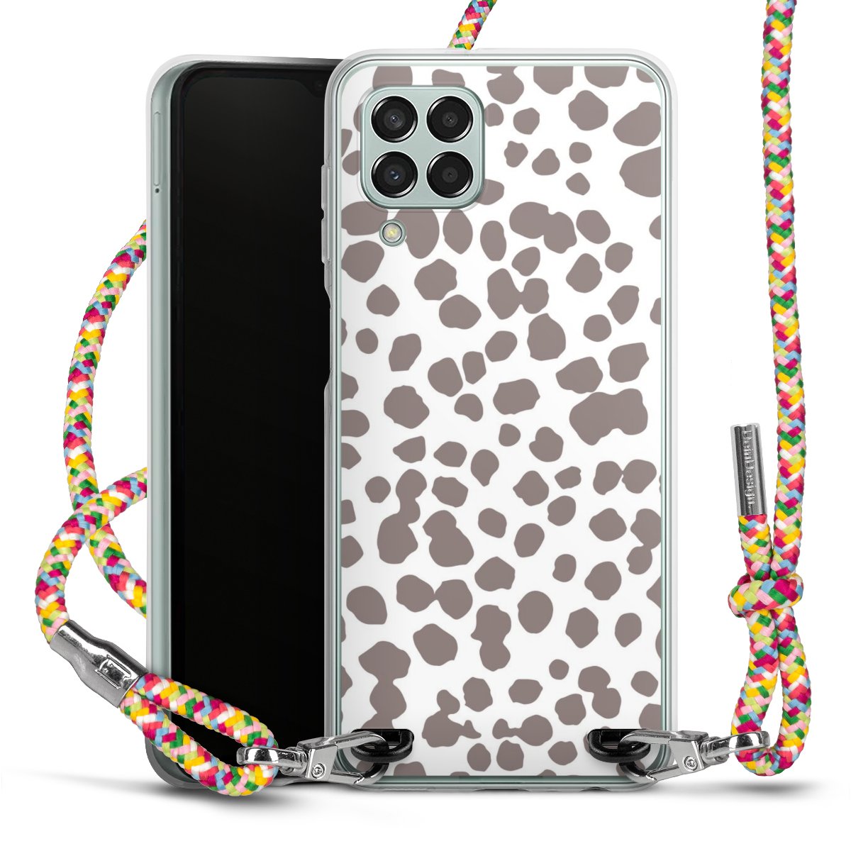 The flexible case is made from a highquality TPU material (thermoplastic Polyurethan). Thanks to its longlasting and break resistant characterisitcs, the case is flexible yet consistent in form and has a great grip and feel. The textile strap made from Polyester gives a chic yet casual accent allowing you to carry your phone like a bag or necklace - a practical gadget perfect for your next adventure. The textile strap is about 1.70 meters long and the length can easily be adjusted through the knots. Our Carry Case is available in Colourful, Mint-Camouflage, Very-Berry, Sahara-Sand and Sparkling-Neon. The ends of the textile strap are covered with metallic end caps to protect them against fraying.