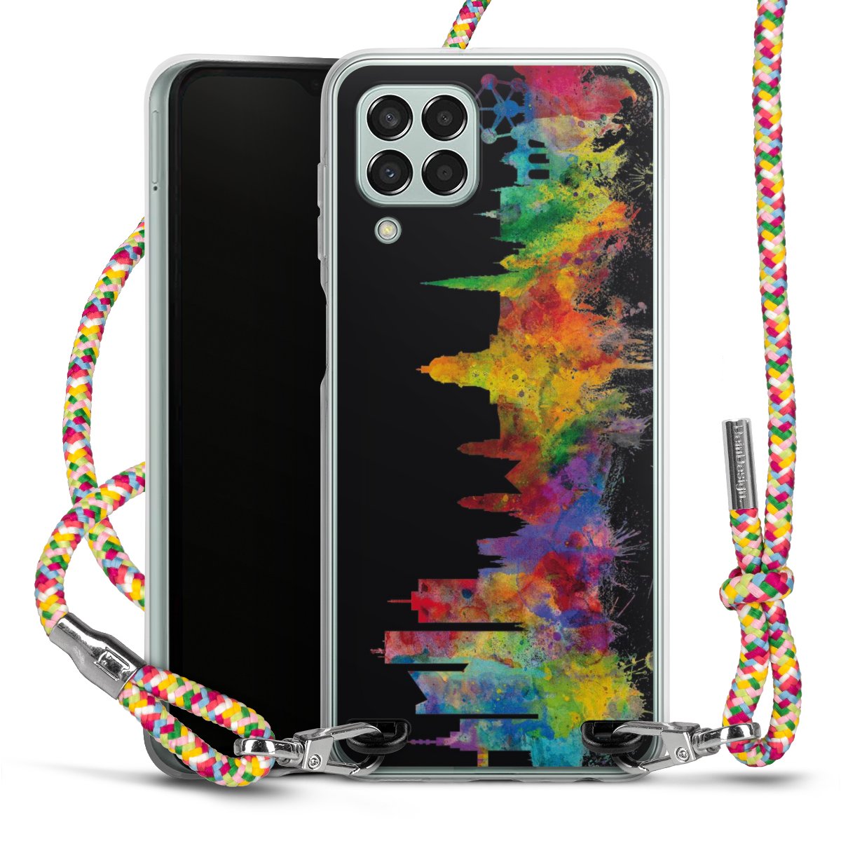 The flexible case is made from a highquality TPU material (thermoplastic Polyurethan). Thanks to its longlasting and break resistant characterisitcs, the case is flexible yet consistent in form and has a great grip and feel. The textile strap made from Polyester gives a chic yet casual accent allowing you to carry your phone like a bag or necklace - a practical gadget perfect for your next adventure. The textile strap is about 1.70 meters long and the length can easily be adjusted through the knots. Our Carry Case is available in Colourful, Mint-Camouflage, Very-Berry, Sahara-Sand and Sparkling-Neon. The ends of the textile strap are covered with metallic end caps to protect them against fraying.