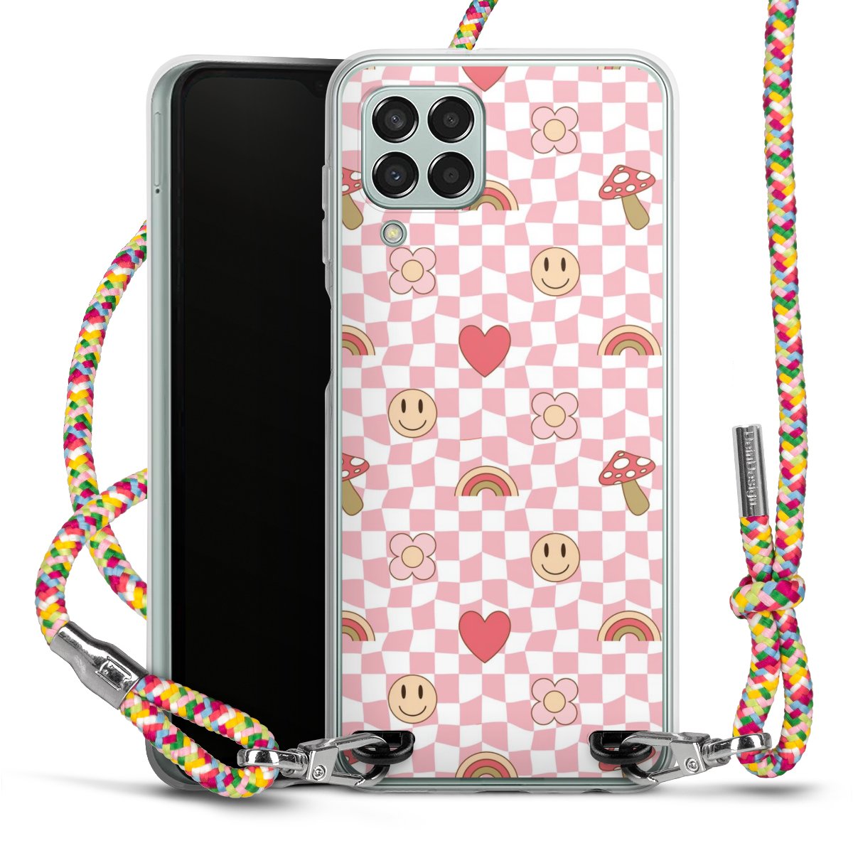 The flexible case is made from a highquality TPU material (thermoplastic Polyurethan). Thanks to its longlasting and break resistant characterisitcs, the case is flexible yet consistent in form and has a great grip and feel. The textile strap made from Polyester gives a chic yet casual accent allowing you to carry your phone like a bag or necklace - a practical gadget perfect for your next adventure. The textile strap is about 1.70 meters long and the length can easily be adjusted through the knots. Our Carry Case is available in Colourful, Mint-Camouflage, Very-Berry, Sahara-Sand and Sparkling-Neon. The ends of the textile strap are covered with metallic end caps to protect them against fraying.