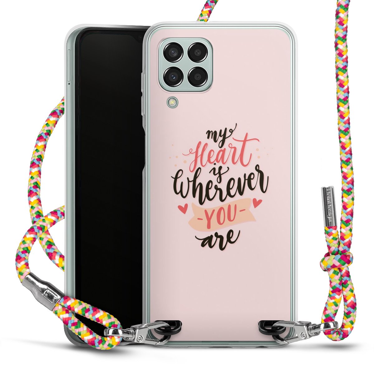The flexible case is made from a highquality TPU material (thermoplastic Polyurethan). Thanks to its longlasting and break resistant characterisitcs, the case is flexible yet consistent in form and has a great grip and feel. The textile strap made from Polyester gives a chic yet casual accent allowing you to carry your phone like a bag or necklace - a practical gadget perfect for your next adventure. The textile strap is about 1.70 meters long and the length can easily be adjusted through the knots. Our Carry Case is available in Colourful, Mint-Camouflage, Very-Berry, Sahara-Sand and Sparkling-Neon. The ends of the textile strap are covered with metallic end caps to protect them against fraying.