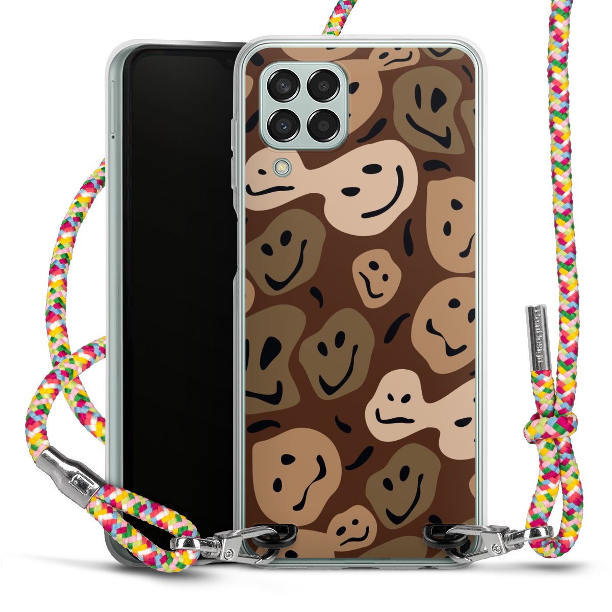 The flexible case is made from a highquality TPU material (thermoplastic Polyurethan). Thanks to its longlasting and break resistant characterisitcs, the case is flexible yet consistent in form and has a great grip and feel. The textile strap made from Polyester gives a chic yet casual accent allowing you to carry your phone like a bag or necklace - a practical gadget perfect for your next adventure. The textile strap is about 1.70 meters long and the length can easily be adjusted through the knots. Our Carry Case is available in Colourful, Mint-Camouflage, Very-Berry, Sahara-Sand and Sparkling-Neon. The ends of the textile strap are covered with metallic end caps to protect them against fraying.
