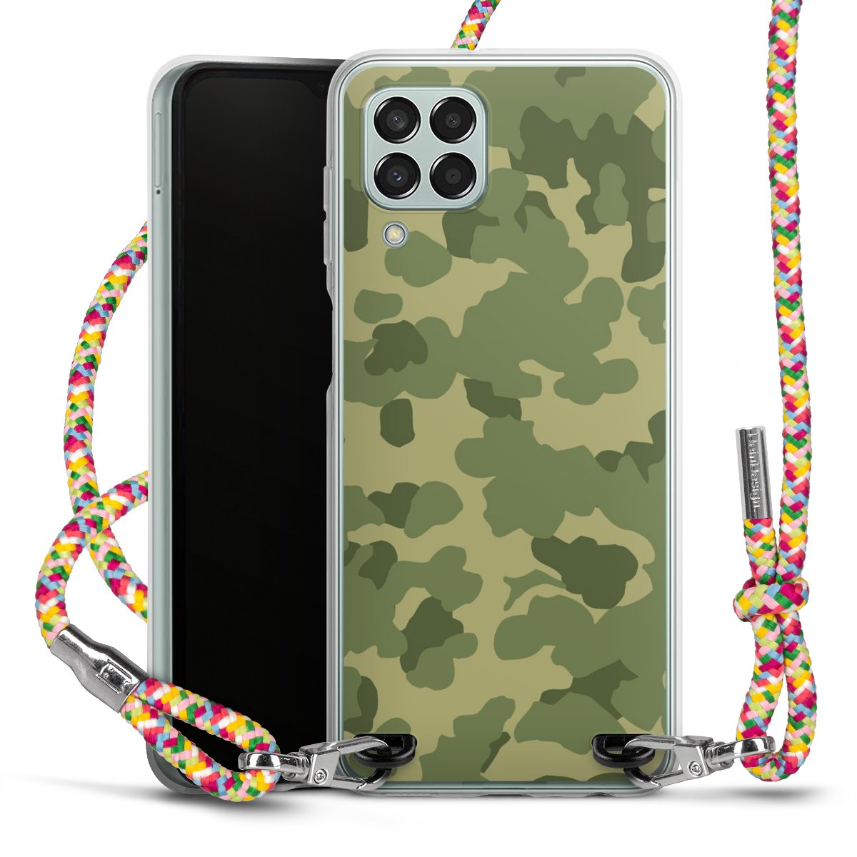 The flexible case is made from a highquality TPU material (thermoplastic Polyurethan). Thanks to its longlasting and break resistant characterisitcs, the case is flexible yet consistent in form and has a great grip and feel. The textile strap made from Polyester gives a chic yet casual accent allowing you to carry your phone like a bag or necklace - a practical gadget perfect for your next adventure. The textile strap is about 1.70 meters long and the length can easily be adjusted through the knots. Our Carry Case is available in Colourful, Mint-Camouflage, Very-Berry, Sahara-Sand and Sparkling-Neon. The ends of the textile strap are covered with metallic end caps to protect them against fraying.