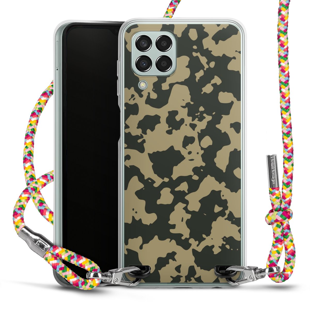 The flexible case is made from a highquality TPU material (thermoplastic Polyurethan). Thanks to its longlasting and break resistant characterisitcs, the case is flexible yet consistent in form and has a great grip and feel. The textile strap made from Polyester gives a chic yet casual accent allowing you to carry your phone like a bag or necklace - a practical gadget perfect for your next adventure. The textile strap is about 1.70 meters long and the length can easily be adjusted through the knots. Our Carry Case is available in Colourful, Mint-Camouflage, Very-Berry, Sahara-Sand and Sparkling-Neon. The ends of the textile strap are covered with metallic end caps to protect them against fraying.