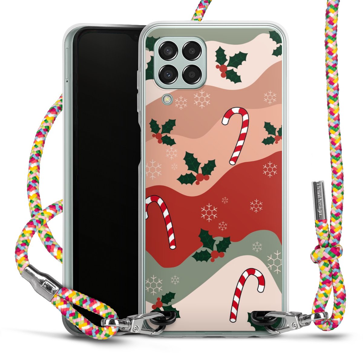 The flexible case is made from a highquality TPU material (thermoplastic Polyurethan). Thanks to its longlasting and break resistant characterisitcs, the case is flexible yet consistent in form and has a great grip and feel. The textile strap made from Polyester gives a chic yet casual accent allowing you to carry your phone like a bag or necklace - a practical gadget perfect for your next adventure. The textile strap is about 1.70 meters long and the length can easily be adjusted through the knots. Our Carry Case is available in Colourful, Mint-Camouflage, Very-Berry, Sahara-Sand and Sparkling-Neon. The ends of the textile strap are covered with metallic end caps to protect them against fraying.