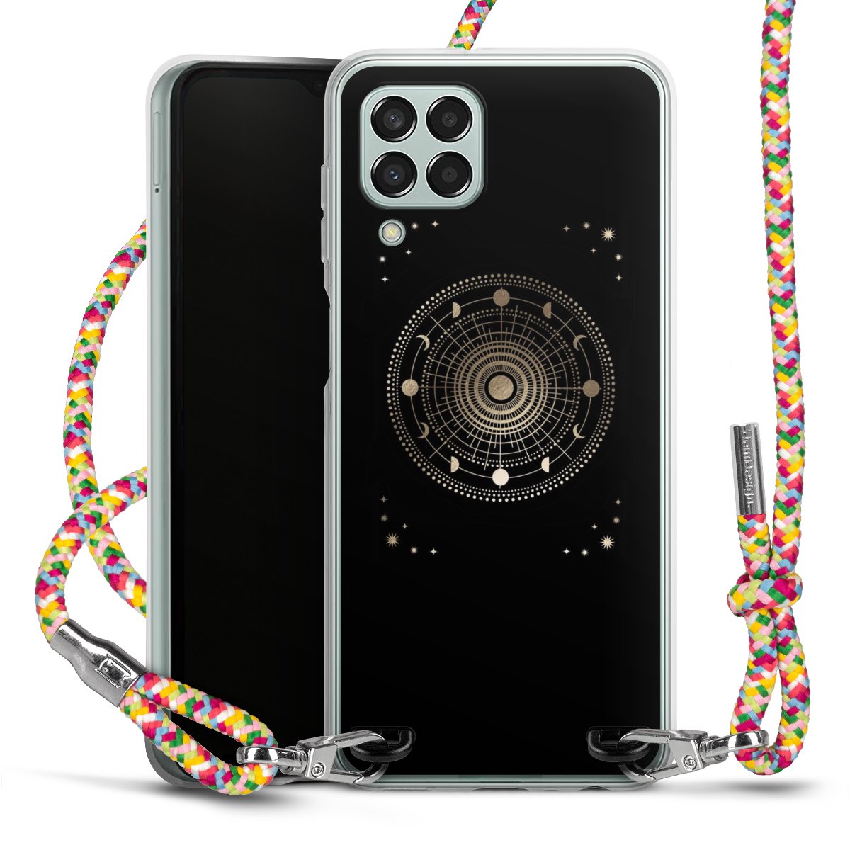 The flexible case is made from a highquality TPU material (thermoplastic Polyurethan). Thanks to its longlasting and break resistant characterisitcs, the case is flexible yet consistent in form and has a great grip and feel. The textile strap made from Polyester gives a chic yet casual accent allowing you to carry your phone like a bag or necklace - a practical gadget perfect for your next adventure. The textile strap is about 1.70 meters long and the length can easily be adjusted through the knots. Our Carry Case is available in Colourful, Mint-Camouflage, Very-Berry, Sahara-Sand and Sparkling-Neon. The ends of the textile strap are covered with metallic end caps to protect them against fraying.