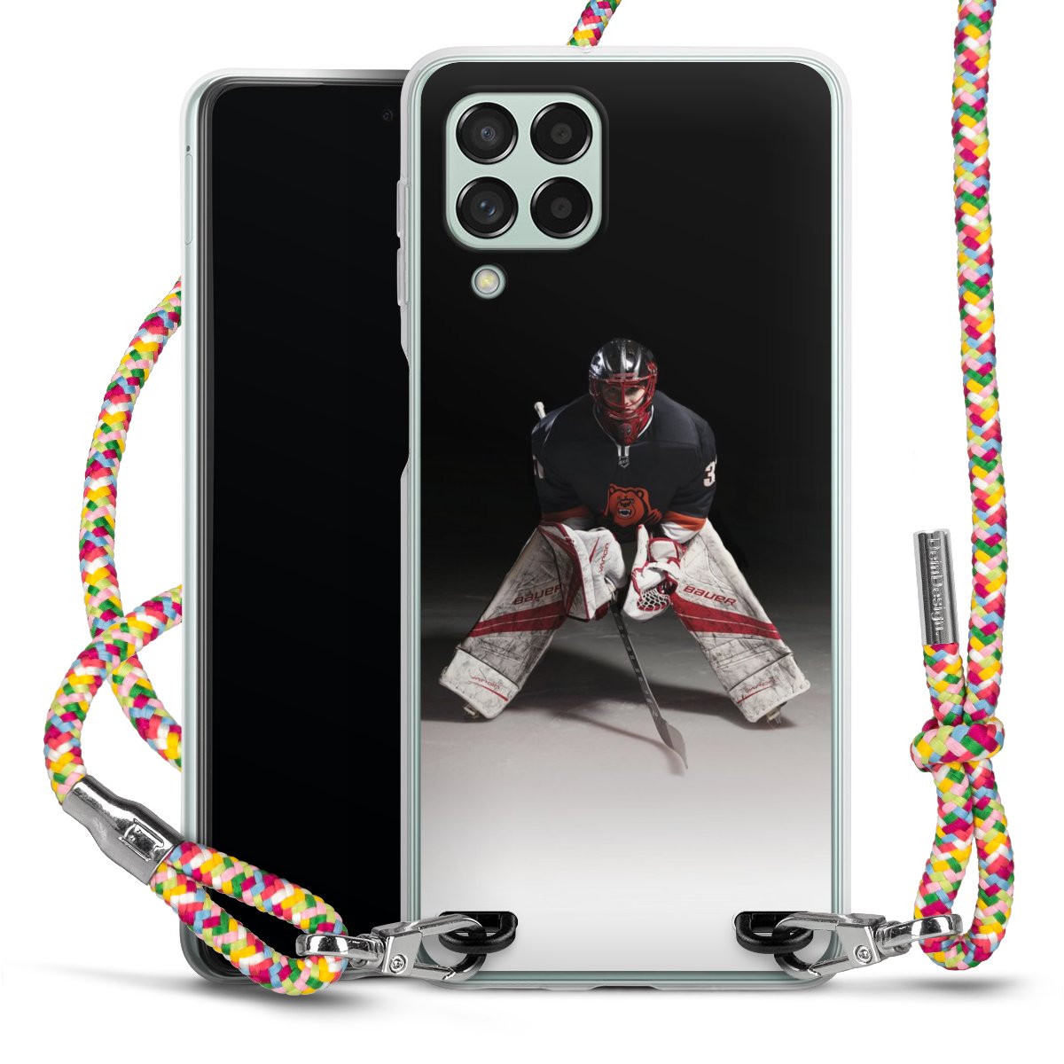 The flexible case is made from a highquality TPU material (thermoplastic Polyurethan). Thanks to its longlasting and break resistant characterisitcs, the case is flexible yet consistent in form and has a great grip and feel. The textile strap made from Polyester gives a chic yet casual accent allowing you to carry your phone like a bag or necklace - a practical gadget perfect for your next adventure. The textile strap is about 1.70 meters long and the length can easily be adjusted through the knots. Our Carry Case is available in Colourful, Mint-Camouflage, Very-Berry, Sahara-Sand and Sparkling-Neon. The ends of the textile strap are covered with metallic end caps to protect them against fraying.