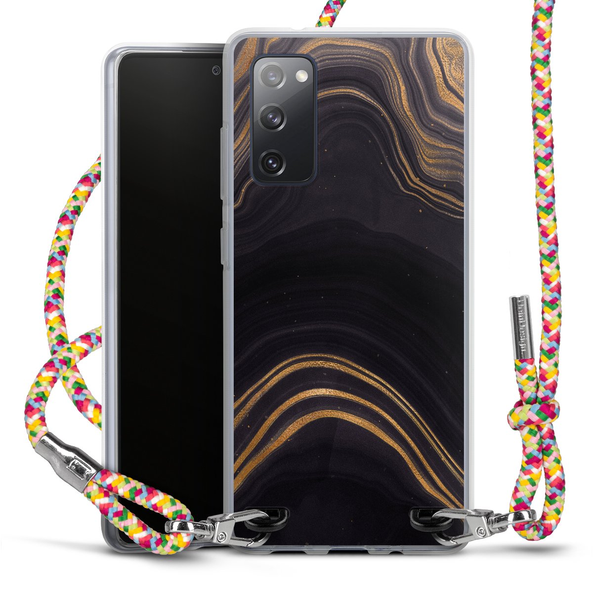 The flexible case is made from a highquality TPU material (thermoplastic Polyurethan). Thanks to its longlasting and break resistant characterisitcs, the case is flexible yet consistent in form and has a great grip and feel. The textile strap made from Polyester gives a chic yet casual accent allowing you to carry your phone like a bag or necklace - a practical gadget perfect for your next adventure. The textile strap is about 1.70 meters long and the length can easily be adjusted through the knots. Our Carry Case is available in Colourful, Mint-Camouflage, Very-Berry, Sahara-Sand and Sparkling-Neon. The ends of the textile strap are covered with metallic end caps to protect them against fraying.