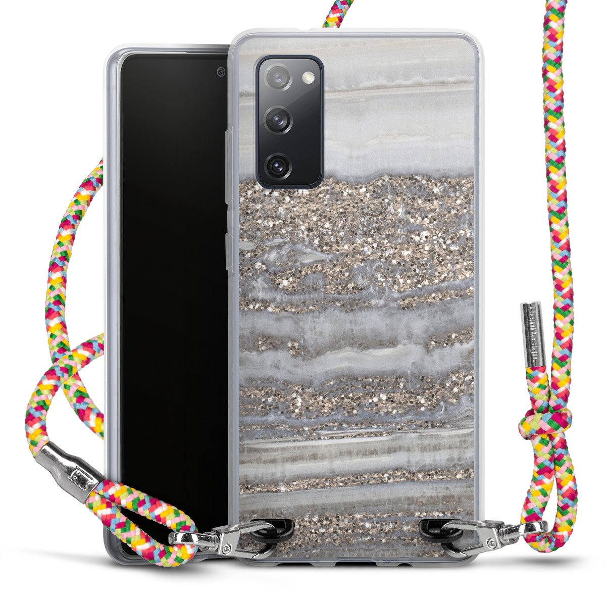 The flexible case is made from a highquality TPU material (thermoplastic Polyurethan). Thanks to its longlasting and break resistant characterisitcs, the case is flexible yet consistent in form and has a great grip and feel. The textile strap made from Polyester gives a chic yet casual accent allowing you to carry your phone like a bag or necklace - a practical gadget perfect for your next adventure. The textile strap is about 1.70 meters long and the length can easily be adjusted through the knots. Our Carry Case is available in Colourful, Mint-Camouflage, Very-Berry, Sahara-Sand and Sparkling-Neon. The ends of the textile strap are covered with metallic end caps to protect them against fraying.