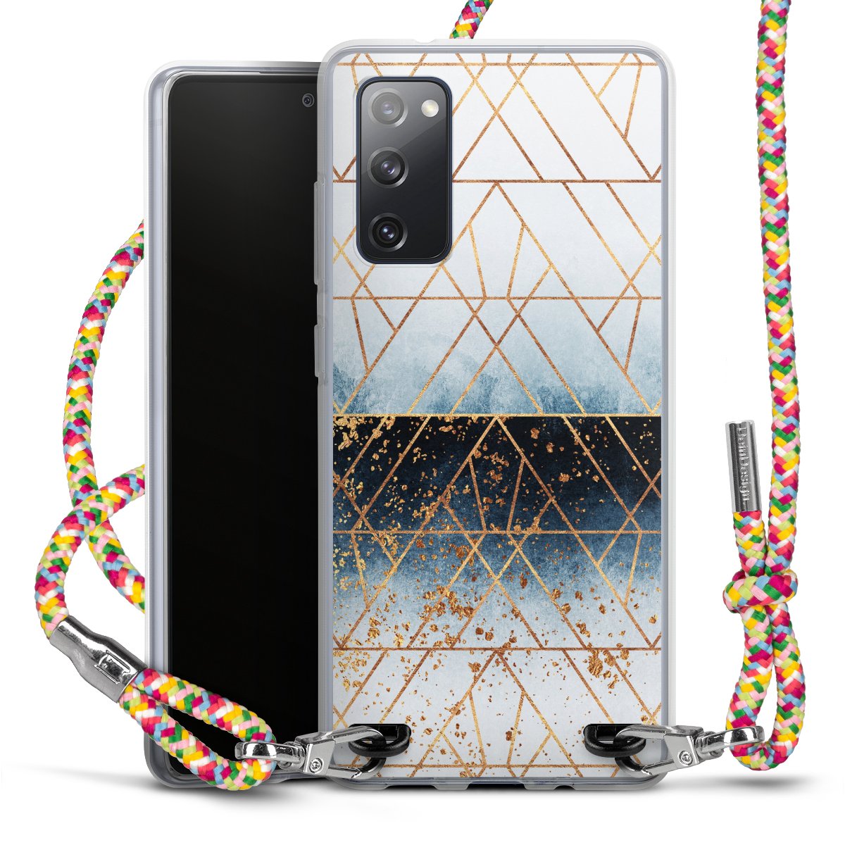 The flexible case is made from a highquality TPU material (thermoplastic Polyurethan). Thanks to its longlasting and break resistant characterisitcs, the case is flexible yet consistent in form and has a great grip and feel. The textile strap made from Polyester gives a chic yet casual accent allowing you to carry your phone like a bag or necklace - a practical gadget perfect for your next adventure. The textile strap is about 1.70 meters long and the length can easily be adjusted through the knots. Our Carry Case is available in Colourful, Mint-Camouflage, Very-Berry, Sahara-Sand and Sparkling-Neon. The ends of the textile strap are covered with metallic end caps to protect them against fraying.