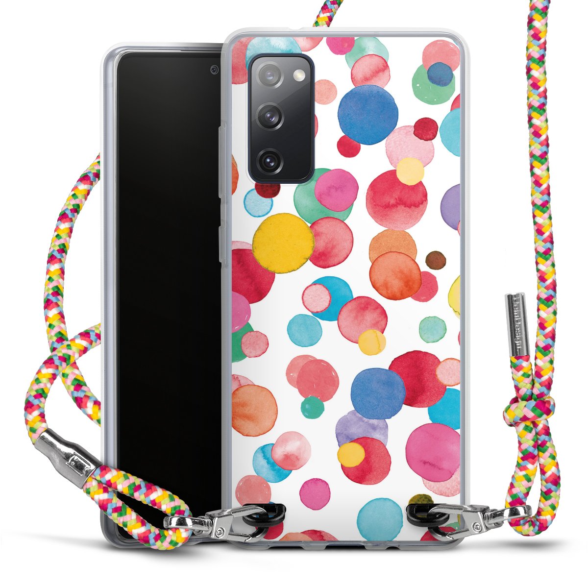 The flexible case is made from a highquality TPU material (thermoplastic Polyurethan). Thanks to its longlasting and break resistant characterisitcs, the case is flexible yet consistent in form and has a great grip and feel. The textile strap made from Polyester gives a chic yet casual accent allowing you to carry your phone like a bag or necklace - a practical gadget perfect for your next adventure. The textile strap is about 1.70 meters long and the length can easily be adjusted through the knots. Our Carry Case is available in Colourful, Mint-Camouflage, Very-Berry, Sahara-Sand and Sparkling-Neon. The ends of the textile strap are covered with metallic end caps to protect them against fraying.