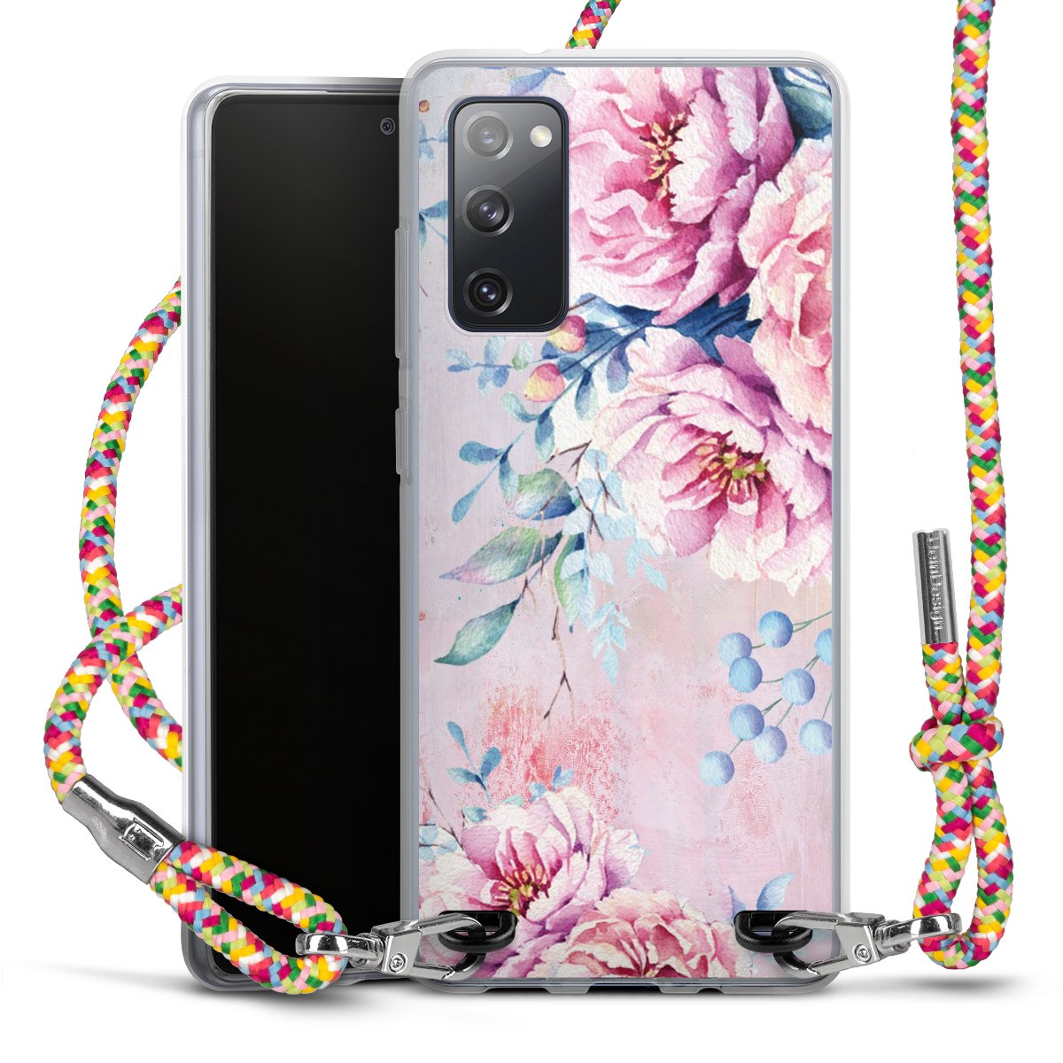 The flexible case is made from a highquality TPU material (thermoplastic Polyurethan). Thanks to its longlasting and break resistant characterisitcs, the case is flexible yet consistent in form and has a great grip and feel. The textile strap made from Polyester gives a chic yet casual accent allowing you to carry your phone like a bag or necklace - a practical gadget perfect for your next adventure. The textile strap is about 1.70 meters long and the length can easily be adjusted through the knots. Our Carry Case is available in Colourful, Mint-Camouflage, Very-Berry, Sahara-Sand and Sparkling-Neon. The ends of the textile strap are covered with metallic end caps to protect them against fraying.
