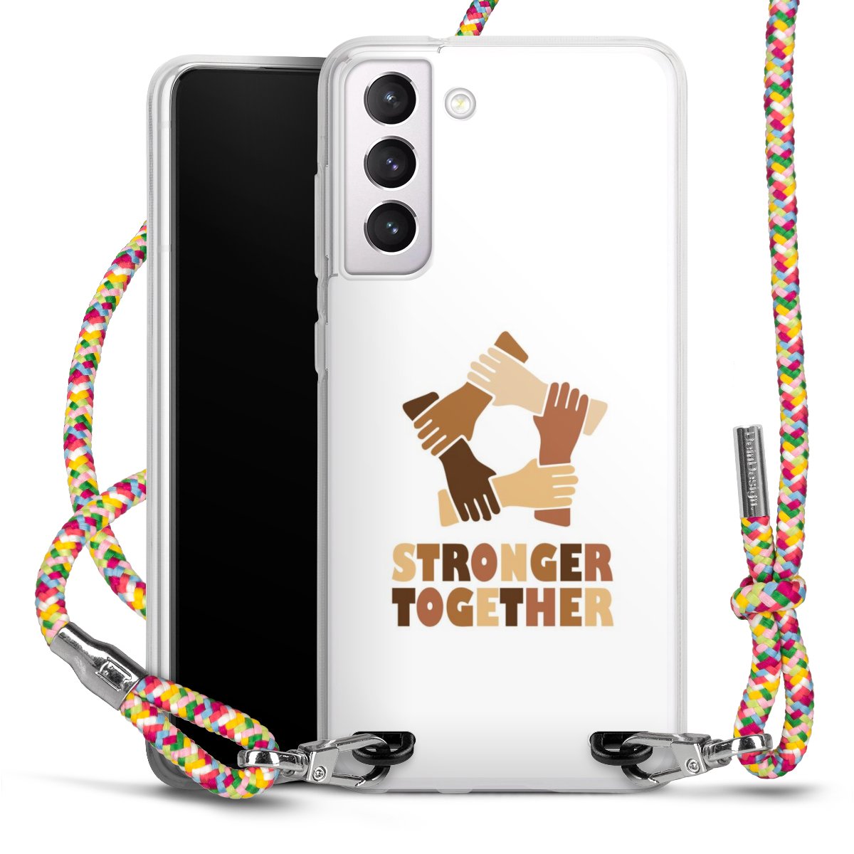 The flexible case is made from a highquality TPU material (thermoplastic Polyurethan). Thanks to its longlasting and break resistant characterisitcs, the case is flexible yet consistent in form and has a great grip and feel. The textile strap made from Polyester gives a chic yet casual accent allowing you to carry your phone like a bag or necklace - a practical gadget perfect for your next adventure. The textile strap is about 1.70 meters long and the length can easily be adjusted through the knots. Our Carry Case is available in Colourful, Mint-Camouflage, Very-Berry, Sahara-Sand and Sparkling-Neon. The ends of the textile strap are covered with metallic end caps to protect them against fraying.