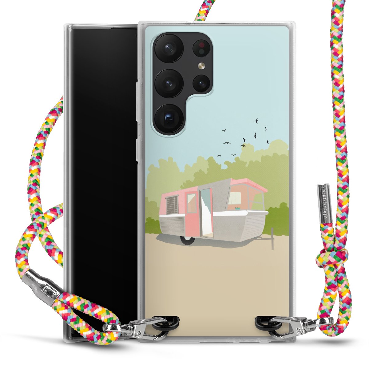 The flexible case is made from a highquality TPU material (thermoplastic Polyurethan). Thanks to its longlasting and break resistant characterisitcs, the case is flexible yet consistent in form and has a great grip and feel. The textile strap made from Polyester gives a chic yet casual accent allowing you to carry your phone like a bag or necklace - a practical gadget perfect for your next adventure. The textile strap is about 1.70 meters long and the length can easily be adjusted through the knots. Our Carry Case is available in Colourful, Mint-Camouflage, Very-Berry, Sahara-Sand and Sparkling-Neon. The ends of the textile strap are covered with metallic end caps to protect them against fraying.