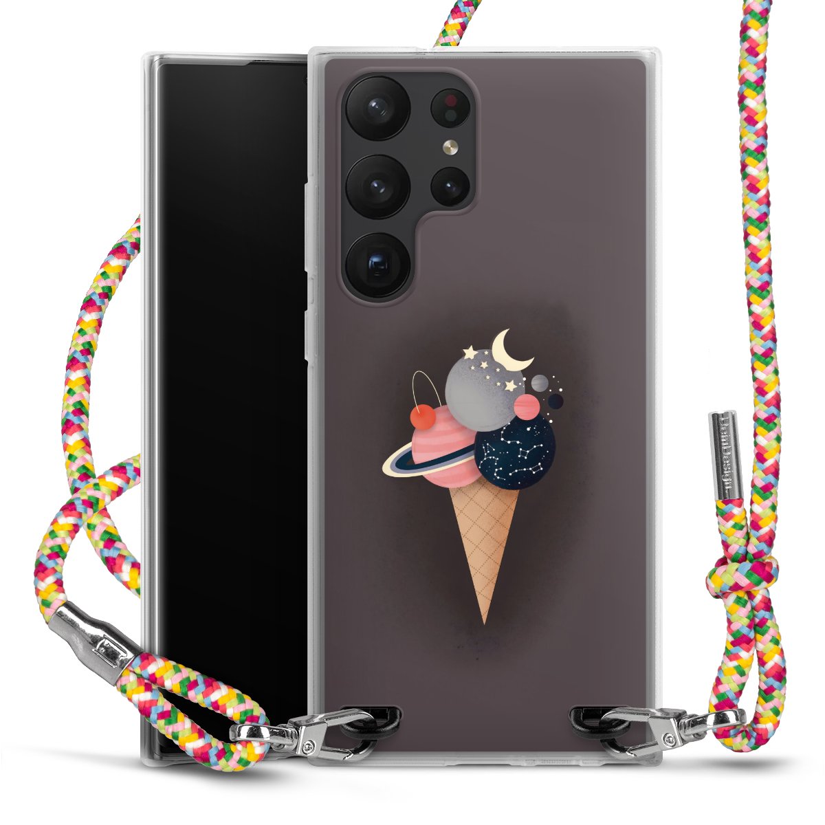The flexible case is made from a highquality TPU material (thermoplastic Polyurethan). Thanks to its longlasting and break resistant characterisitcs, the case is flexible yet consistent in form and has a great grip and feel. The textile strap made from Polyester gives a chic yet casual accent allowing you to carry your phone like a bag or necklace - a practical gadget perfect for your next adventure. The textile strap is about 1.70 meters long and the length can easily be adjusted through the knots. Our Carry Case is available in Colourful, Mint-Camouflage, Very-Berry, Sahara-Sand and Sparkling-Neon. The ends of the textile strap are covered with metallic end caps to protect them against fraying.
