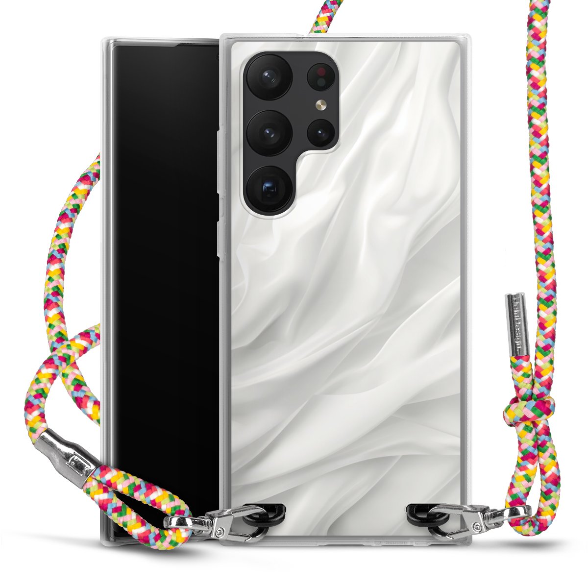 For our Carry Case we are using our advanced direct printing technology. The back side is fully printable, the frame is left unprinted. You can order the phone case without print, printed completely or also with a partial print. Choose one of our exclusive, pre-made shop designs or let your creativity shine and create your very own unique design with your pictures, overlays and text.