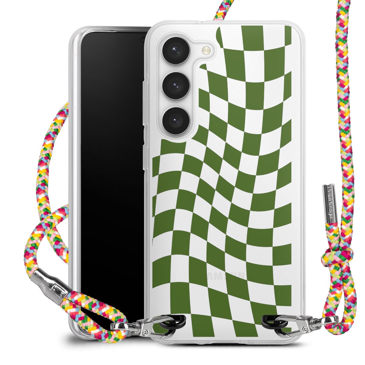 The flexible case is made from a highquality TPU material (thermoplastic Polyurethan). Thanks to its longlasting and break resistant characterisitcs, the case is flexible yet consistent in form and has a great grip and feel. The textile strap made from Polyester gives a chic yet casual accent allowing you to carry your phone like a bag or necklace - a practical gadget perfect for your next adventure. The textile strap is about 1.70 meters long and the length can easily be adjusted through the knots. Our Carry Case is available in Colourful, Mint-Camouflage, Very-Berry, Sahara-Sand and Sparkling-Neon. The ends of the textile strap are covered with metallic end caps to protect them against fraying.