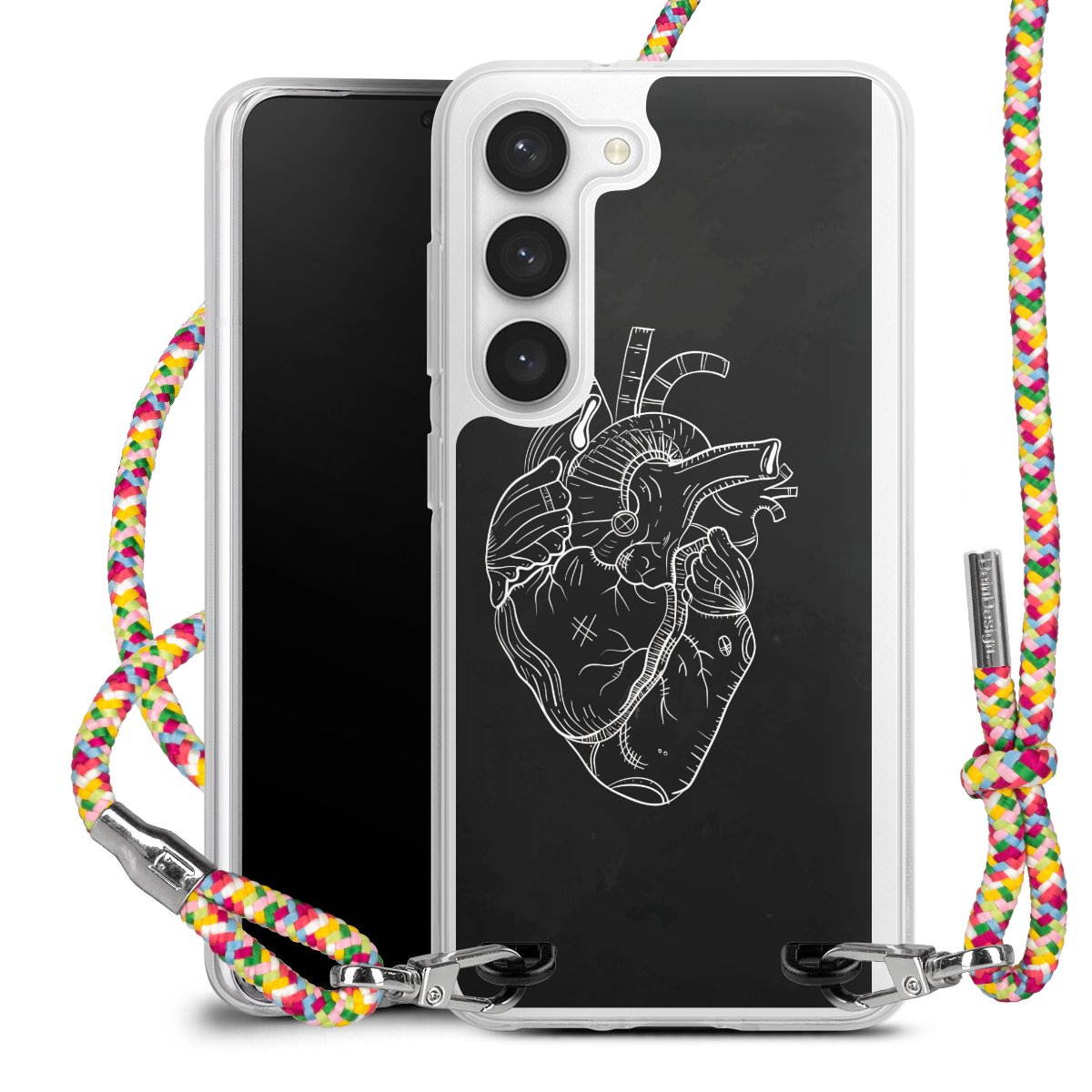 For our Carry Case we are using our advanced direct printing technology. The back side is fully printable, the frame is left unprinted. You can order the phone case without print, printed completely or also with a partial print. Choose one of our exclusive, pre-made shop designs or let your creativity shine and create your very own unique design with your pictures, overlays and text.