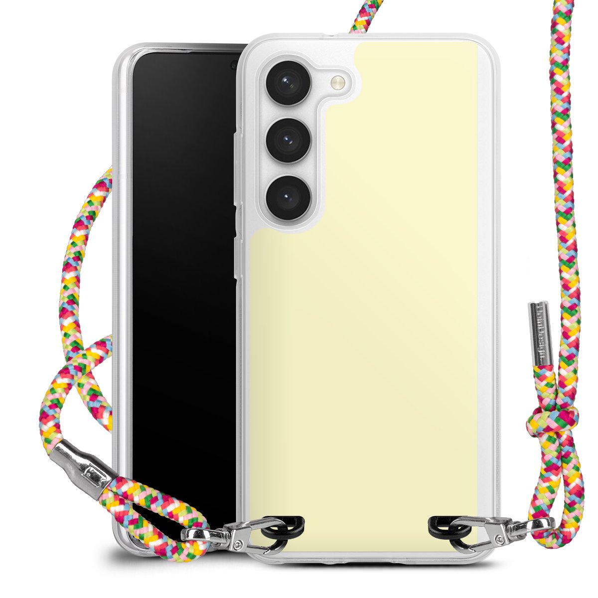 The flexible case is made from a highquality TPU material (thermoplastic Polyurethan). Thanks to its longlasting and break resistant characterisitcs, the case is flexible yet consistent in form and has a great grip and feel. The textile strap made from Polyester gives a chic yet casual accent allowing you to carry your phone like a bag or necklace - a practical gadget perfect for your next adventure. The textile strap is about 1.70 meters long and the length can easily be adjusted through the knots. Our Carry Case is available in Colourful, Mint-Camouflage, Very-Berry, Sahara-Sand and Sparkling-Neon. The ends of the textile strap are covered with metallic end caps to protect them against fraying.