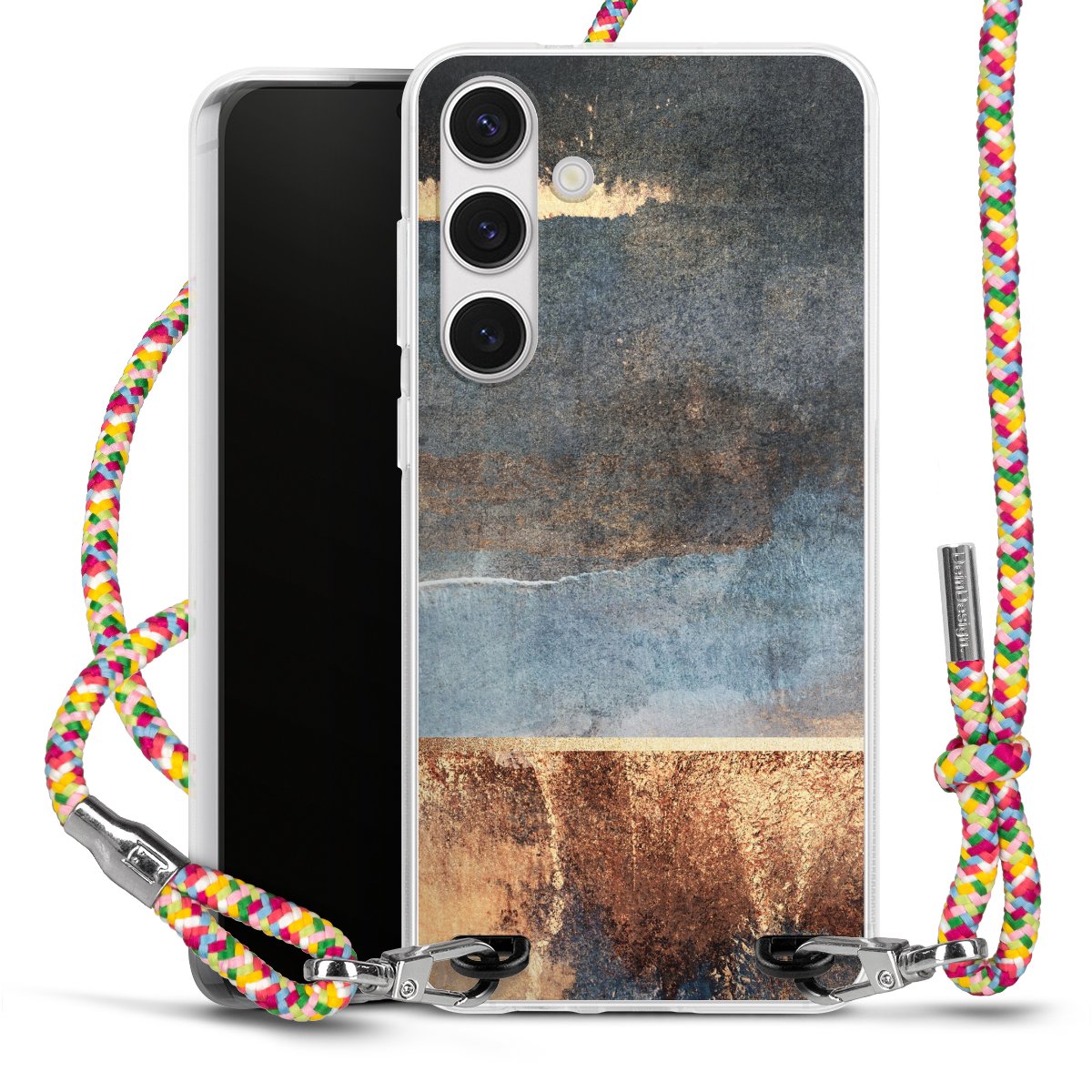 The flexible case is made from a highquality TPU material (thermoplastic Polyurethan). Thanks to its longlasting and break resistant characterisitcs, the case is flexible yet consistent in form and has a great grip and feel. The textile strap made from Polyester gives a chic yet casual accent allowing you to carry your phone like a bag or necklace - a practical gadget perfect for your next adventure. The textile strap is about 1.70 meters long and the length can easily be adjusted through the knots. Our Carry Case is available in Colourful, Mint-Camouflage, Very-Berry, Sahara-Sand and Sparkling-Neon. The ends of the textile strap are covered with metallic end caps to protect them against fraying.