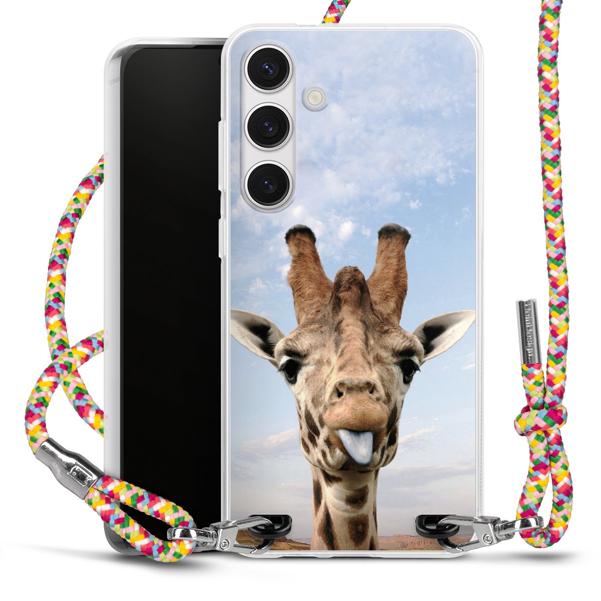 The flexible case is made from a highquality TPU material (thermoplastic Polyurethan). Thanks to its longlasting and break resistant characterisitcs, the case is flexible yet consistent in form and has a great grip and feel. The textile strap made from Polyester gives a chic yet casual accent allowing you to carry your phone like a bag or necklace - a practical gadget perfect for your next adventure. The textile strap is about 1.70 meters long and the length can easily be adjusted through the knots. Our Carry Case is available in Colourful, Mint-Camouflage, Very-Berry, Sahara-Sand and Sparkling-Neon. The ends of the textile strap are covered with metallic end caps to protect them against fraying.