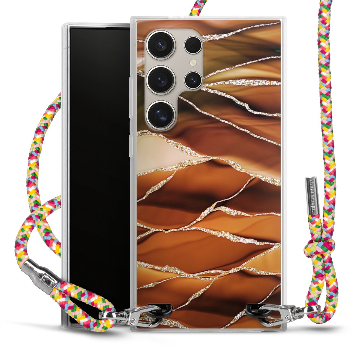 The flexible case is made from a highquality TPU material (thermoplastic Polyurethan). Thanks to its longlasting and break resistant characterisitcs, the case is flexible yet consistent in form and has a great grip and feel. The textile strap made from Polyester gives a chic yet casual accent allowing you to carry your phone like a bag or necklace - a practical gadget perfect for your next adventure. The textile strap is about 1.70 meters long and the length can easily be adjusted through the knots. Our Carry Case is available in Colourful, Mint-Camouflage, Very-Berry, Sahara-Sand and Sparkling-Neon. The ends of the textile strap are covered with metallic end caps to protect them against fraying.