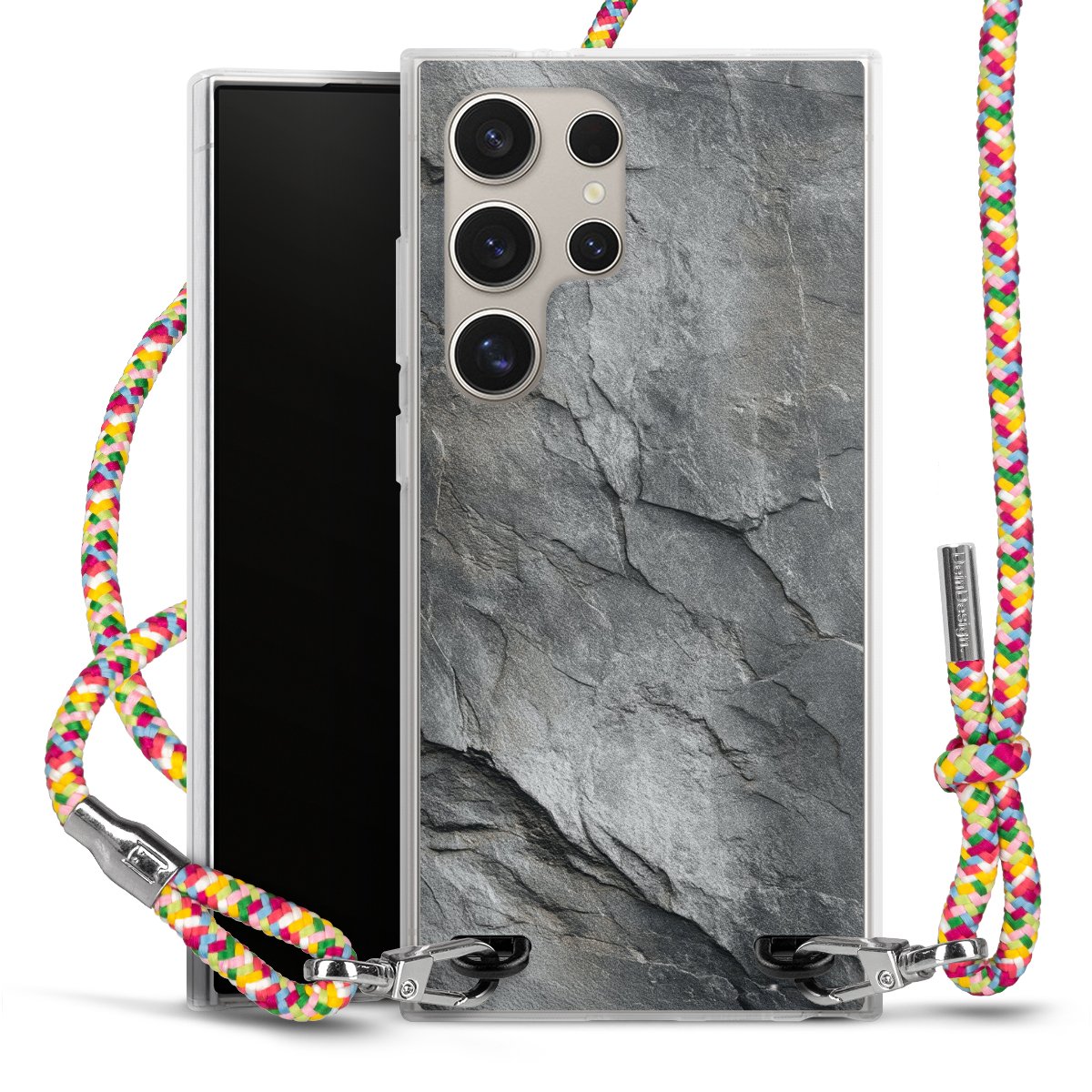 The flexible case is made from a highquality TPU material (thermoplastic Polyurethan). Thanks to its longlasting and break resistant characterisitcs, the case is flexible yet consistent in form and has a great grip and feel. The textile strap made from Polyester gives a chic yet casual accent allowing you to carry your phone like a bag or necklace - a practical gadget perfect for your next adventure. The textile strap is about 1.70 meters long and the length can easily be adjusted through the knots. Our Carry Case is available in Colourful, Mint-Camouflage, Very-Berry, Sahara-Sand and Sparkling-Neon. The ends of the textile strap are covered with metallic end caps to protect them against fraying.