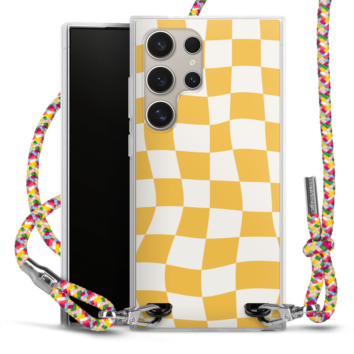 The flexible case is made from a highquality TPU material (thermoplastic Polyurethan). Thanks to its longlasting and break resistant characterisitcs, the case is flexible yet consistent in form and has a great grip and feel. The textile strap made from Polyester gives a chic yet casual accent allowing you to carry your phone like a bag or necklace - a practical gadget perfect for your next adventure. The textile strap is about 1.70 meters long and the length can easily be adjusted through the knots. Our Carry Case is available in Colourful, Mint-Camouflage, Very-Berry, Sahara-Sand and Sparkling-Neon. The ends of the textile strap are covered with metallic end caps to protect them against fraying.