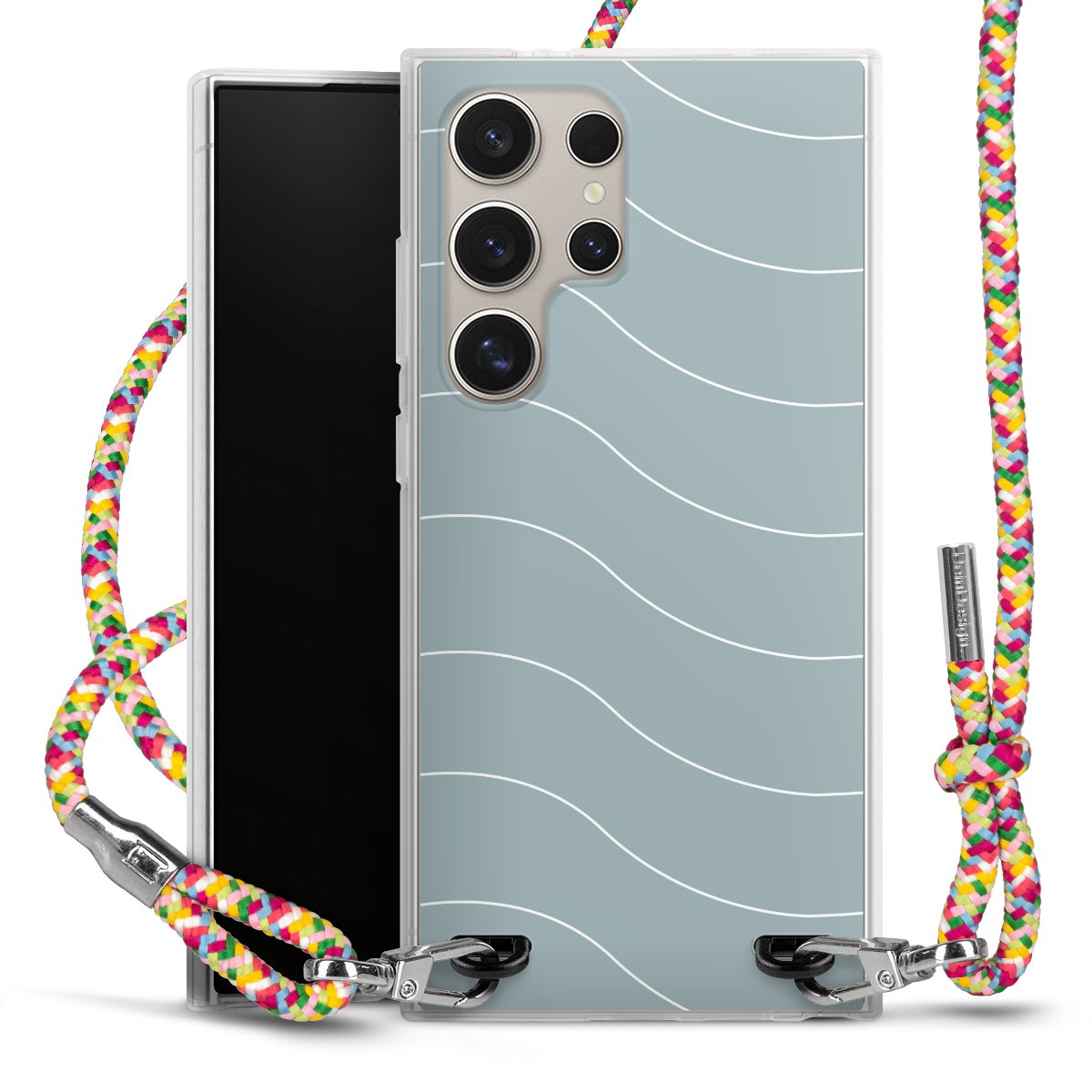 The flexible case is made from a highquality TPU material (thermoplastic Polyurethan). Thanks to its longlasting and break resistant characterisitcs, the case is flexible yet consistent in form and has a great grip and feel. The textile strap made from Polyester gives a chic yet casual accent allowing you to carry your phone like a bag or necklace - a practical gadget perfect for your next adventure. The textile strap is about 1.70 meters long and the length can easily be adjusted through the knots. Our Carry Case is available in Colourful, Mint-Camouflage, Very-Berry, Sahara-Sand and Sparkling-Neon. The ends of the textile strap are covered with metallic end caps to protect them against fraying.