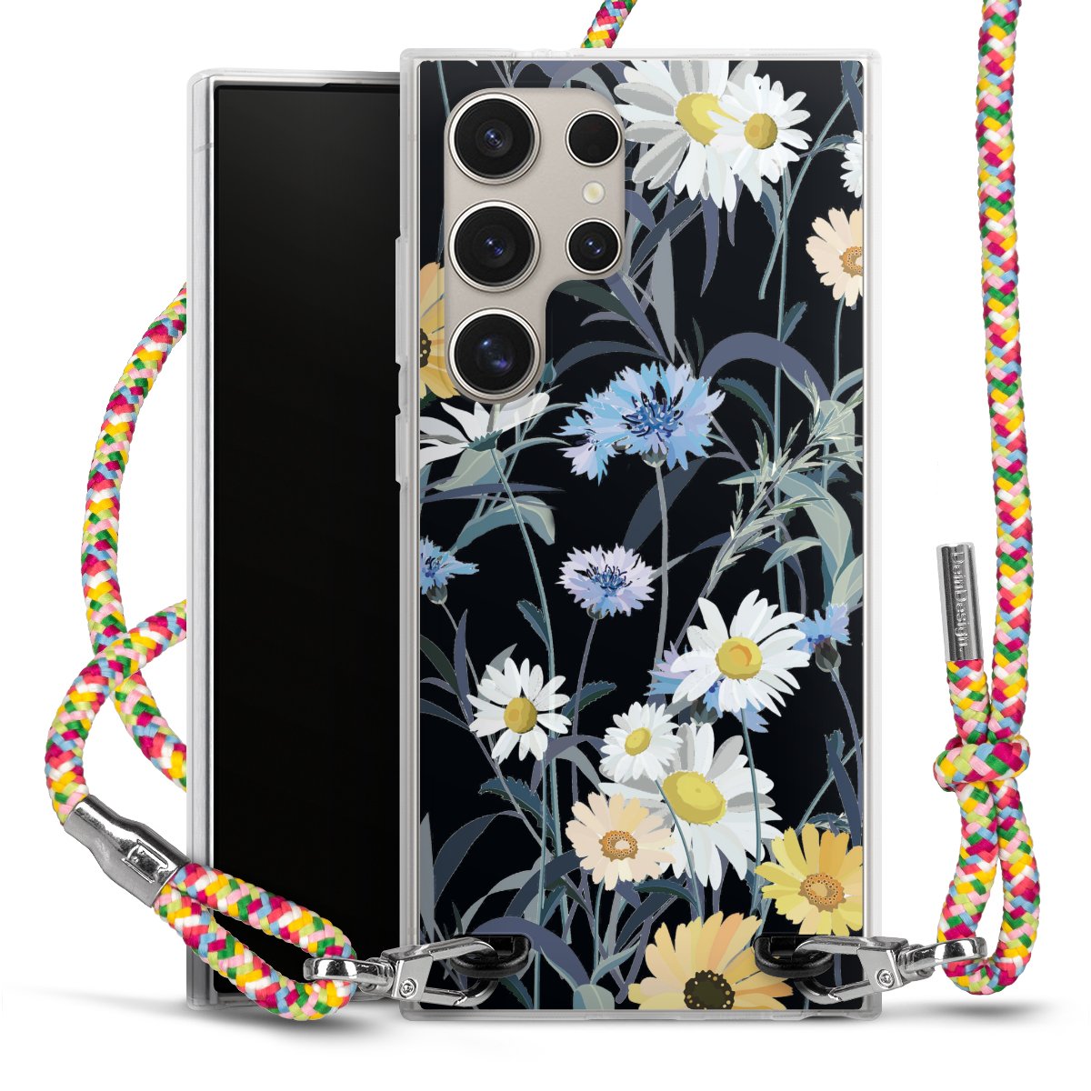 The flexible case is made from a highquality TPU material (thermoplastic Polyurethan). Thanks to its longlasting and break resistant characterisitcs, the case is flexible yet consistent in form and has a great grip and feel. The textile strap made from Polyester gives a chic yet casual accent allowing you to carry your phone like a bag or necklace - a practical gadget perfect for your next adventure. The textile strap is about 1.70 meters long and the length can easily be adjusted through the knots. Our Carry Case is available in Colourful, Mint-Camouflage, Very-Berry, Sahara-Sand and Sparkling-Neon. The ends of the textile strap are covered with metallic end caps to protect them against fraying.