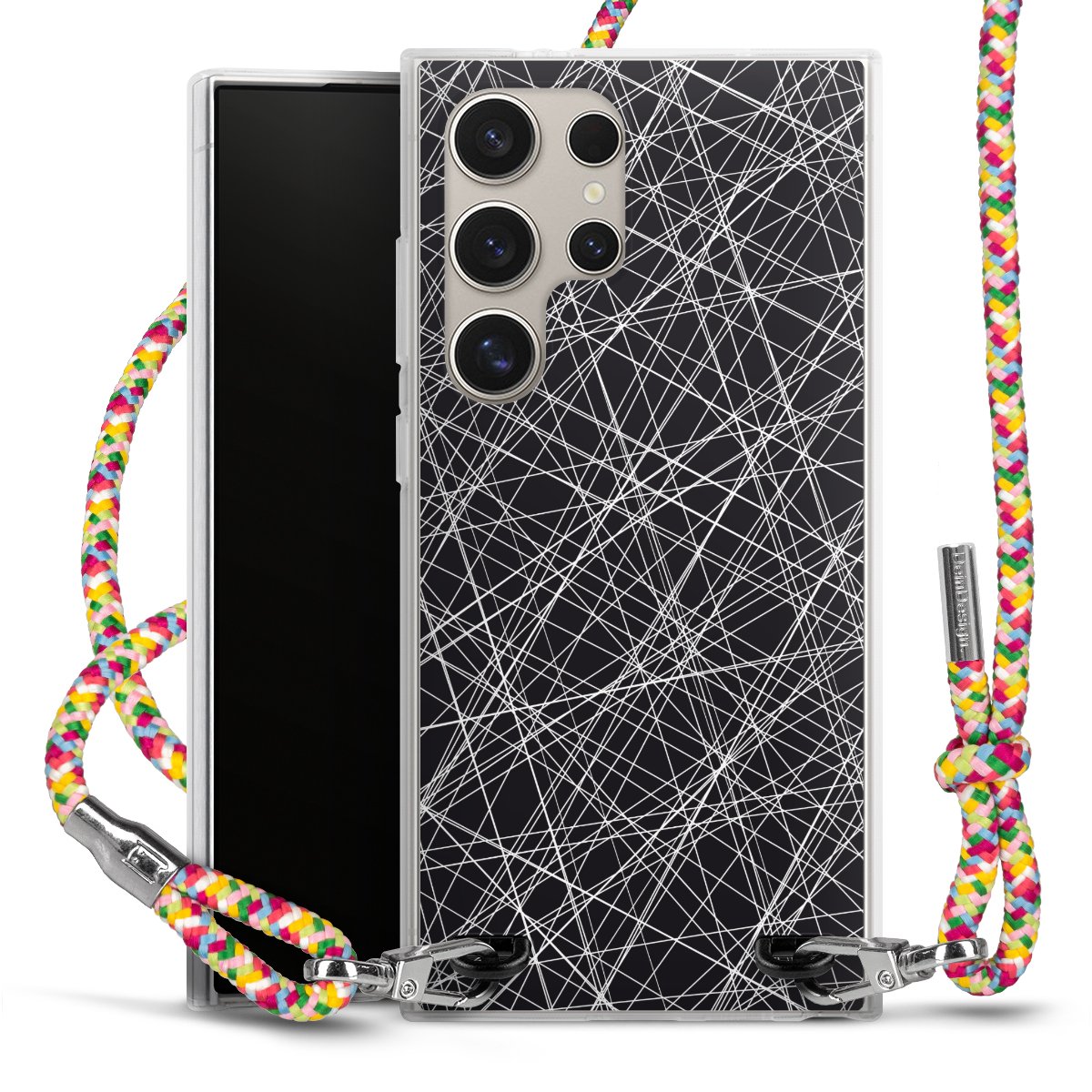 The flexible case is made from a highquality TPU material (thermoplastic Polyurethan). Thanks to its longlasting and break resistant characterisitcs, the case is flexible yet consistent in form and has a great grip and feel. The textile strap made from Polyester gives a chic yet casual accent allowing you to carry your phone like a bag or necklace - a practical gadget perfect for your next adventure. The textile strap is about 1.70 meters long and the length can easily be adjusted through the knots. Our Carry Case is available in Colourful, Mint-Camouflage, Very-Berry, Sahara-Sand and Sparkling-Neon. The ends of the textile strap are covered with metallic end caps to protect them against fraying.