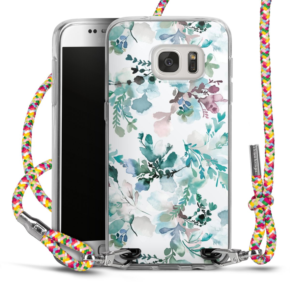 The flexible case is made from a highquality TPU material (thermoplastic Polyurethan). Thanks to its longlasting and break resistant characterisitcs, the case is flexible yet consistent in form and has a great grip and feel. The textile strap made from Polyester gives a chic yet casual accent allowing you to carry your phone like a bag or necklace - a practical gadget perfect for your next adventure. The textile strap is about 1.70 meters long and the length can easily be adjusted through the knots. Our Carry Case is available in Colourful, Mint-Camouflage, Very-Berry, Sahara-Sand and Sparkling-Neon. The ends of the textile strap are covered with metallic end caps to protect them against fraying.