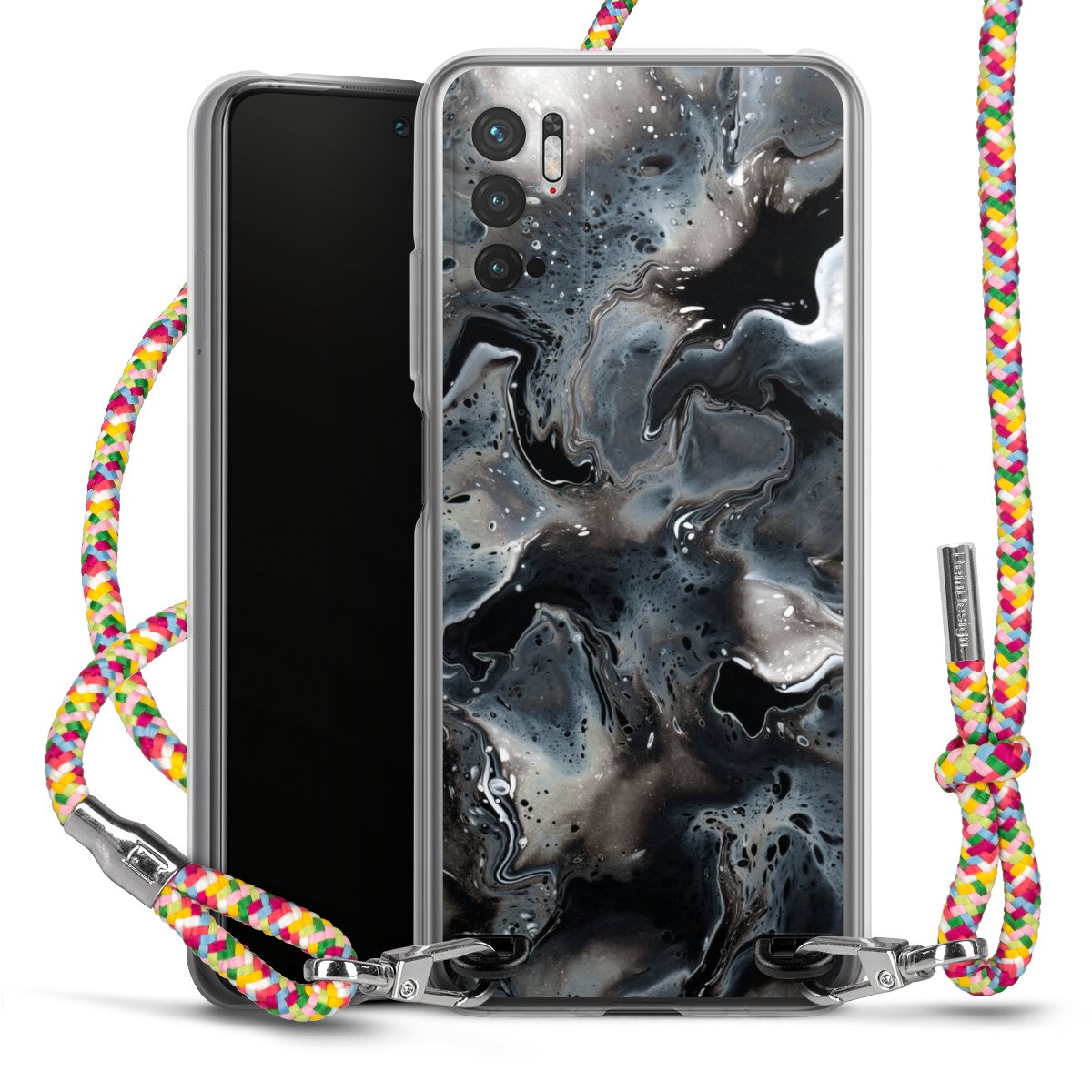 The flexible case is made from a highquality TPU material (thermoplastic Polyurethan). Thanks to its longlasting and break resistant characterisitcs, the case is flexible yet consistent in form and has a great grip and feel. The textile strap made from Polyester gives a chic yet casual accent allowing you to carry your phone like a bag or necklace - a practical gadget perfect for your next adventure. The textile strap is about 1.70 meters long and the length can easily be adjusted through the knots. Our Carry Case is available in Colourful, Mint-Camouflage, Very-Berry, Sahara-Sand and Sparkling-Neon. The ends of the textile strap are covered with metallic end caps to protect them against fraying.