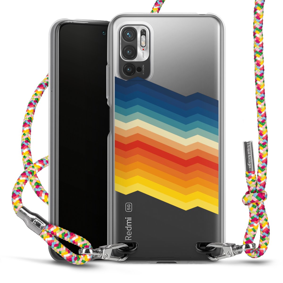 The flexible case is made from a highquality TPU material (thermoplastic Polyurethan). Thanks to its longlasting and break resistant characterisitcs, the case is flexible yet consistent in form and has a great grip and feel. The textile strap made from Polyester gives a chic yet casual accent allowing you to carry your phone like a bag or necklace - a practical gadget perfect for your next adventure. The textile strap is about 1.70 meters long and the length can easily be adjusted through the knots. Our Carry Case is available in Colourful, Mint-Camouflage, Very-Berry, Sahara-Sand and Sparkling-Neon. The ends of the textile strap are covered with metallic end caps to protect them against fraying.
