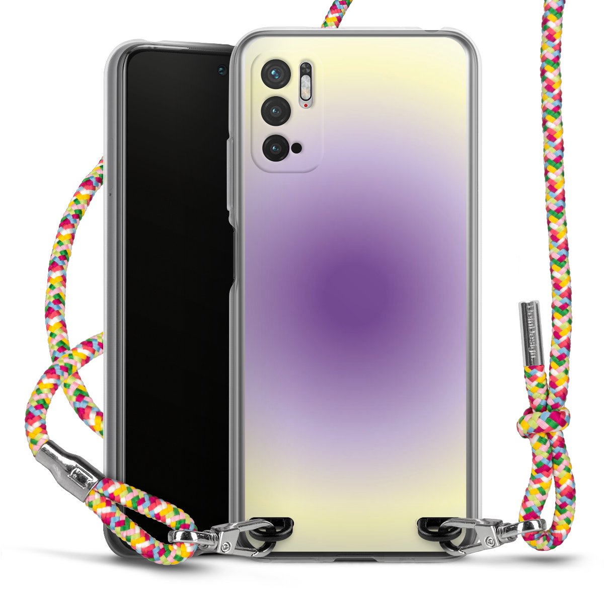 The flexible case is made from a highquality TPU material (thermoplastic Polyurethan). Thanks to its longlasting and break resistant characterisitcs, the case is flexible yet consistent in form and has a great grip and feel. The textile strap made from Polyester gives a chic yet casual accent allowing you to carry your phone like a bag or necklace - a practical gadget perfect for your next adventure. The textile strap is about 1.70 meters long and the length can easily be adjusted through the knots. Our Carry Case is available in Colourful, Mint-Camouflage, Very-Berry, Sahara-Sand and Sparkling-Neon. The ends of the textile strap are covered with metallic end caps to protect them against fraying.