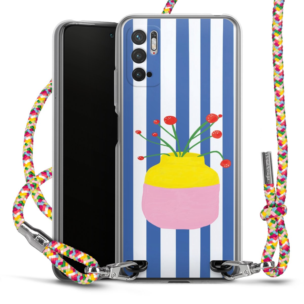 The flexible case is made from a highquality TPU material (thermoplastic Polyurethan). Thanks to its longlasting and break resistant characterisitcs, the case is flexible yet consistent in form and has a great grip and feel. The textile strap made from Polyester gives a chic yet casual accent allowing you to carry your phone like a bag or necklace - a practical gadget perfect for your next adventure. The textile strap is about 1.70 meters long and the length can easily be adjusted through the knots. Our Carry Case is available in Colourful, Mint-Camouflage, Very-Berry, Sahara-Sand and Sparkling-Neon. The ends of the textile strap are covered with metallic end caps to protect them against fraying.