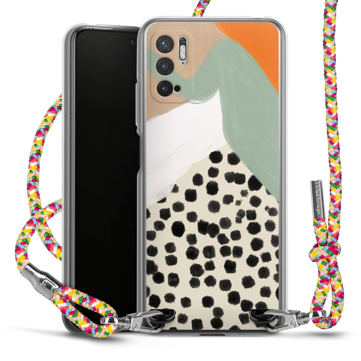 The flexible case is made from a highquality TPU material (thermoplastic Polyurethan). Thanks to its longlasting and break resistant characterisitcs, the case is flexible yet consistent in form and has a great grip and feel. The textile strap made from Polyester gives a chic yet casual accent allowing you to carry your phone like a bag or necklace - a practical gadget perfect for your next adventure. The textile strap is about 1.70 meters long and the length can easily be adjusted through the knots. Our Carry Case is available in Colourful, Mint-Camouflage, Very-Berry, Sahara-Sand and Sparkling-Neon. The ends of the textile strap are covered with metallic end caps to protect them against fraying.