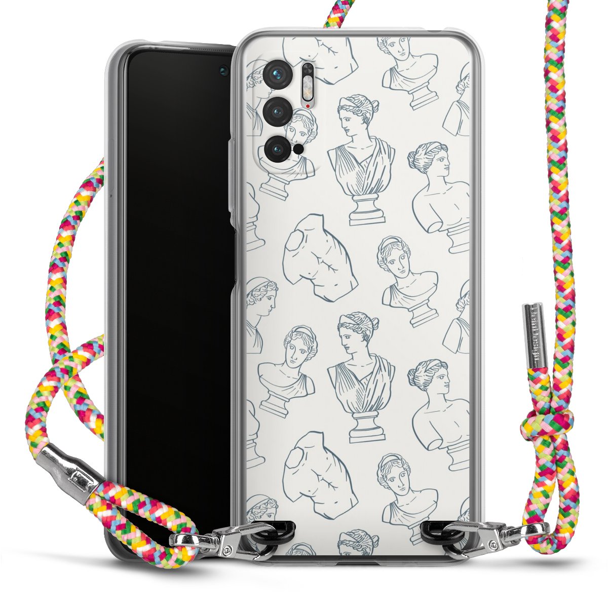 The flexible case is made from a highquality TPU material (thermoplastic Polyurethan). Thanks to its longlasting and break resistant characterisitcs, the case is flexible yet consistent in form and has a great grip and feel. The textile strap made from Polyester gives a chic yet casual accent allowing you to carry your phone like a bag or necklace - a practical gadget perfect for your next adventure. The textile strap is about 1.70 meters long and the length can easily be adjusted through the knots. Our Carry Case is available in Colourful, Mint-Camouflage, Very-Berry, Sahara-Sand and Sparkling-Neon. The ends of the textile strap are covered with metallic end caps to protect them against fraying.