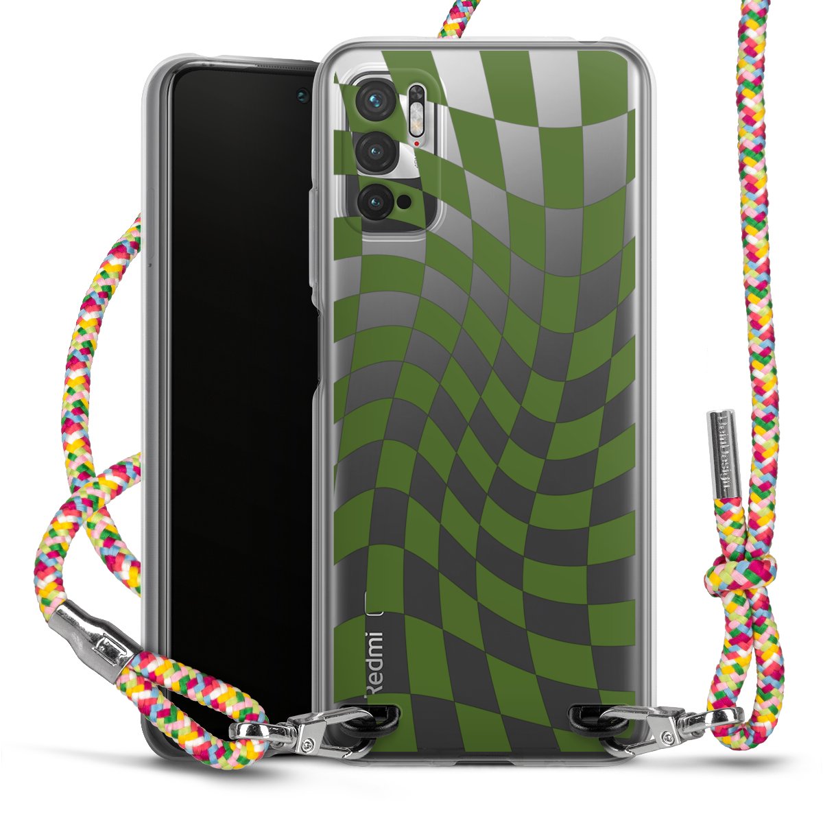 The flexible case is made from a highquality TPU material (thermoplastic Polyurethan). Thanks to its longlasting and break resistant characterisitcs, the case is flexible yet consistent in form and has a great grip and feel. The textile strap made from Polyester gives a chic yet casual accent allowing you to carry your phone like a bag or necklace - a practical gadget perfect for your next adventure. The textile strap is about 1.70 meters long and the length can easily be adjusted through the knots. Our Carry Case is available in Colourful, Mint-Camouflage, Very-Berry, Sahara-Sand and Sparkling-Neon. The ends of the textile strap are covered with metallic end caps to protect them against fraying.