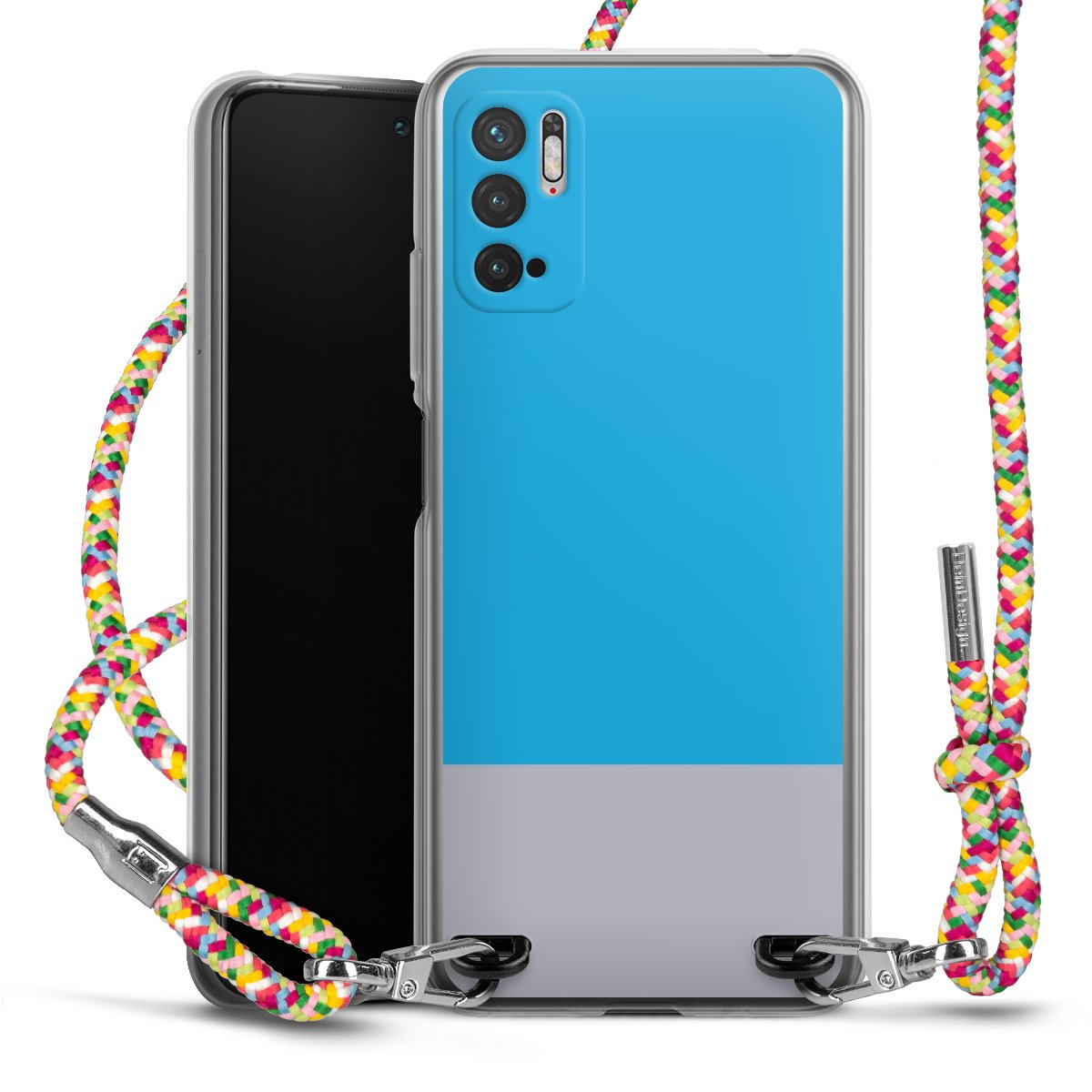 The flexible case is made from a highquality TPU material (thermoplastic Polyurethan). Thanks to its longlasting and break resistant characterisitcs, the case is flexible yet consistent in form and has a great grip and feel. The textile strap made from Polyester gives a chic yet casual accent allowing you to carry your phone like a bag or necklace - a practical gadget perfect for your next adventure. The textile strap is about 1.70 meters long and the length can easily be adjusted through the knots. Our Carry Case is available in Colourful, Mint-Camouflage, Very-Berry, Sahara-Sand and Sparkling-Neon. The ends of the textile strap are covered with metallic end caps to protect them against fraying.