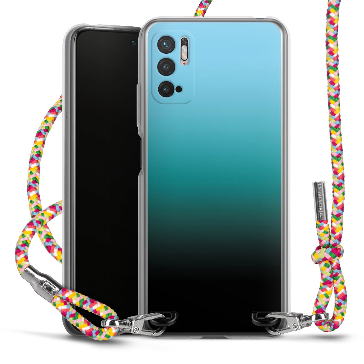 The flexible case is made from a highquality TPU material (thermoplastic Polyurethan). Thanks to its longlasting and break resistant characterisitcs, the case is flexible yet consistent in form and has a great grip and feel. The textile strap made from Polyester gives a chic yet casual accent allowing you to carry your phone like a bag or necklace - a practical gadget perfect for your next adventure. The textile strap is about 1.70 meters long and the length can easily be adjusted through the knots. Our Carry Case is available in Colourful, Mint-Camouflage, Very-Berry, Sahara-Sand and Sparkling-Neon. The ends of the textile strap are covered with metallic end caps to protect them against fraying.
