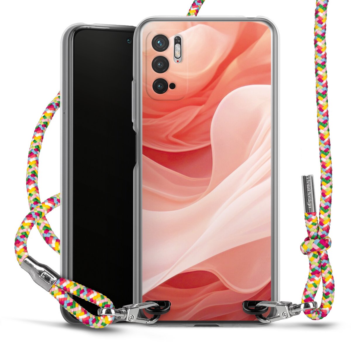 The flexible case is made from a highquality TPU material (thermoplastic Polyurethan). Thanks to its longlasting and break resistant characterisitcs, the case is flexible yet consistent in form and has a great grip and feel. The textile strap made from Polyester gives a chic yet casual accent allowing you to carry your phone like a bag or necklace - a practical gadget perfect for your next adventure. The textile strap is about 1.70 meters long and the length can easily be adjusted through the knots. Our Carry Case is available in Colourful, Mint-Camouflage, Very-Berry, Sahara-Sand and Sparkling-Neon. The ends of the textile strap are covered with metallic end caps to protect them against fraying.