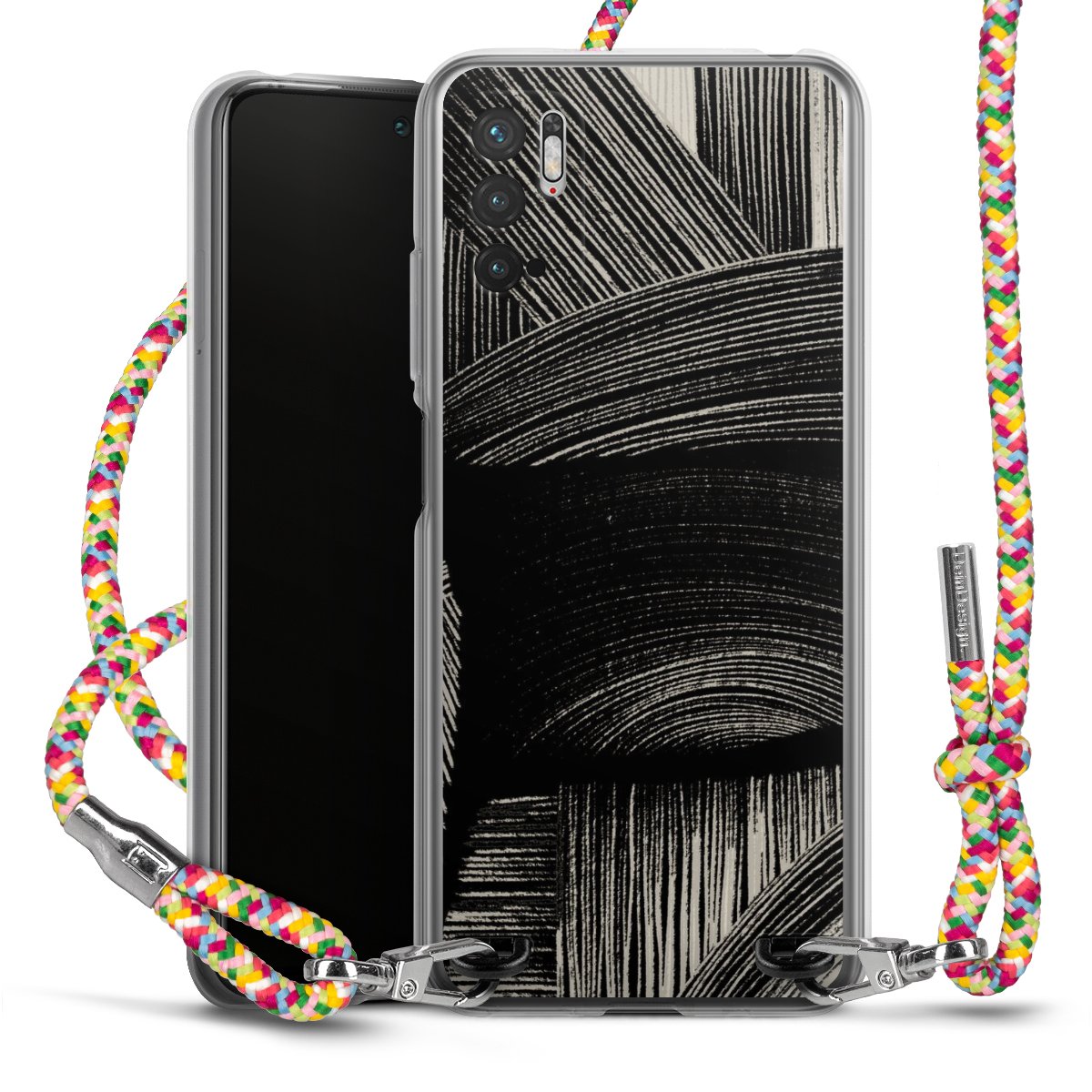 The flexible case is made from a highquality TPU material (thermoplastic Polyurethan). Thanks to its longlasting and break resistant characterisitcs, the case is flexible yet consistent in form and has a great grip and feel. The textile strap made from Polyester gives a chic yet casual accent allowing you to carry your phone like a bag or necklace - a practical gadget perfect for your next adventure. The textile strap is about 1.70 meters long and the length can easily be adjusted through the knots. Our Carry Case is available in Colourful, Mint-Camouflage, Very-Berry, Sahara-Sand and Sparkling-Neon. The ends of the textile strap are covered with metallic end caps to protect them against fraying.