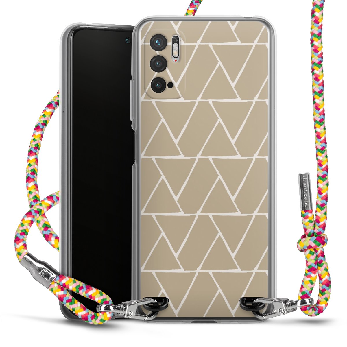 The flexible case is made from a highquality TPU material (thermoplastic Polyurethan). Thanks to its longlasting and break resistant characterisitcs, the case is flexible yet consistent in form and has a great grip and feel. The textile strap made from Polyester gives a chic yet casual accent allowing you to carry your phone like a bag or necklace - a practical gadget perfect for your next adventure. The textile strap is about 1.70 meters long and the length can easily be adjusted through the knots. Our Carry Case is available in Colourful, Mint-Camouflage, Very-Berry, Sahara-Sand and Sparkling-Neon. The ends of the textile strap are covered with metallic end caps to protect them against fraying.