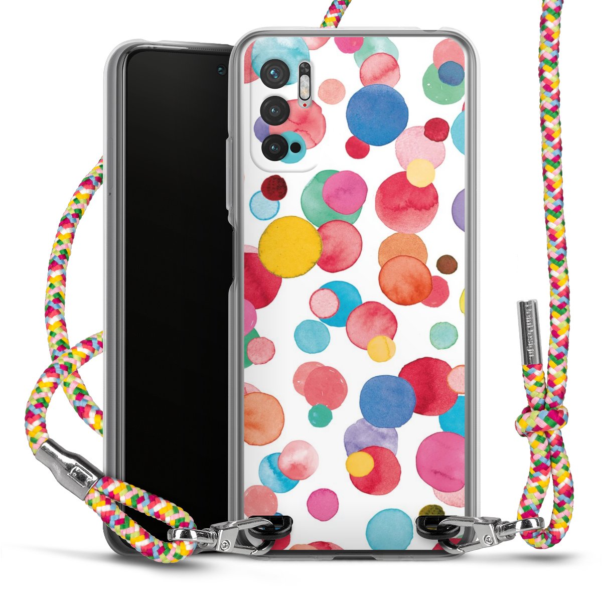 The flexible case is made from a highquality TPU material (thermoplastic Polyurethan). Thanks to its longlasting and break resistant characterisitcs, the case is flexible yet consistent in form and has a great grip and feel. The textile strap made from Polyester gives a chic yet casual accent allowing you to carry your phone like a bag or necklace - a practical gadget perfect for your next adventure. The textile strap is about 1.70 meters long and the length can easily be adjusted through the knots. Our Carry Case is available in Colourful, Mint-Camouflage, Very-Berry, Sahara-Sand and Sparkling-Neon. The ends of the textile strap are covered with metallic end caps to protect them against fraying.