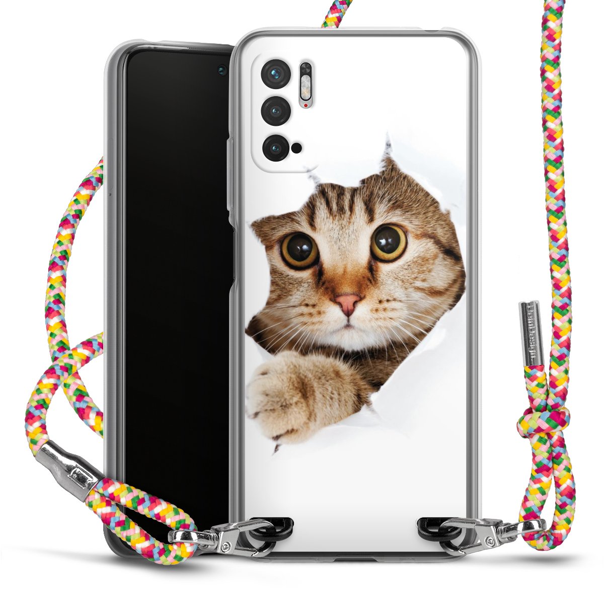 The flexible case is made from a highquality TPU material (thermoplastic Polyurethan). Thanks to its longlasting and break resistant characterisitcs, the case is flexible yet consistent in form and has a great grip and feel. The textile strap made from Polyester gives a chic yet casual accent allowing you to carry your phone like a bag or necklace - a practical gadget perfect for your next adventure. The textile strap is about 1.70 meters long and the length can easily be adjusted through the knots. Our Carry Case is available in Colourful, Mint-Camouflage, Very-Berry, Sahara-Sand and Sparkling-Neon. The ends of the textile strap are covered with metallic end caps to protect them against fraying.